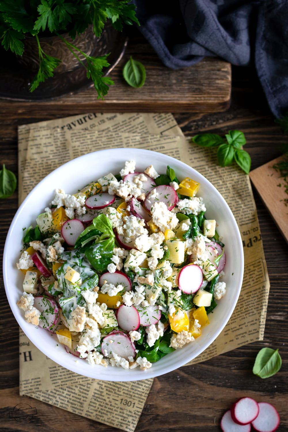Wiosenna sałatka z rzodkiewką i twarogiem to jedna z tych sałatek, które zaskakują smakiem już po pierwszym kęsie. Jest lekka,