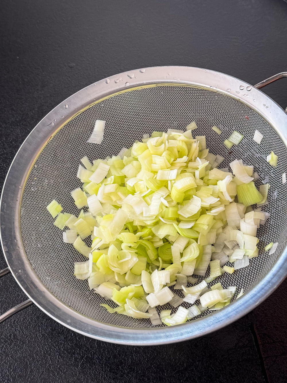 Pora kroimy w kostkę, przelewamy na sicie większą ilością wrzącej wody.