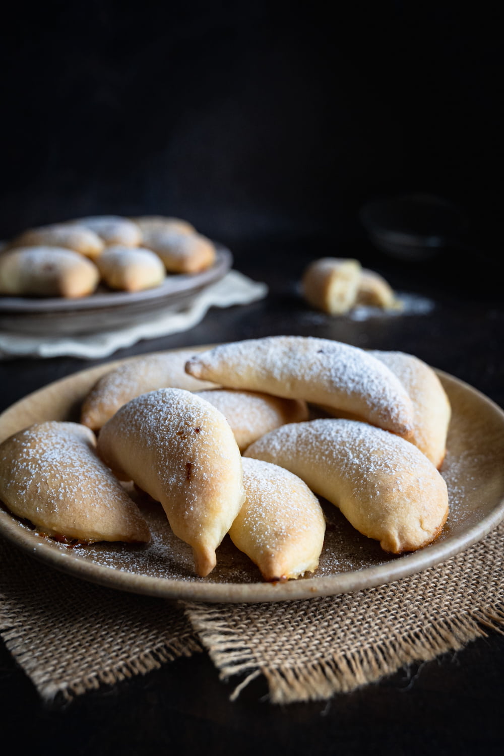 Rogaliki można dodatkowo oprószyć cukrem pudrem.