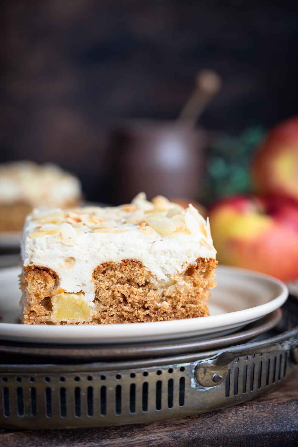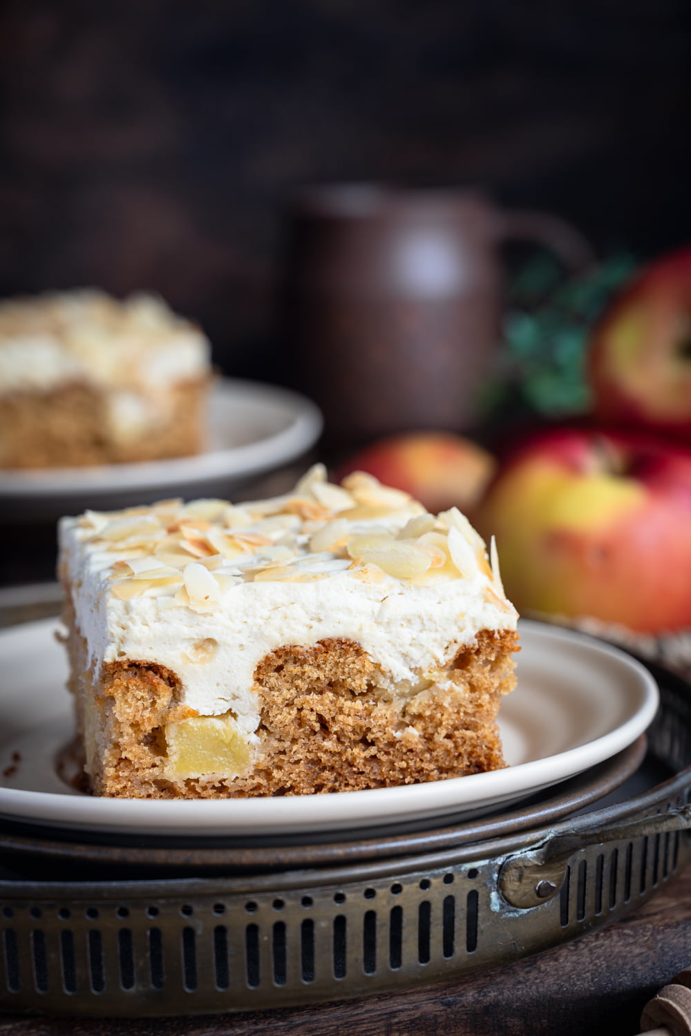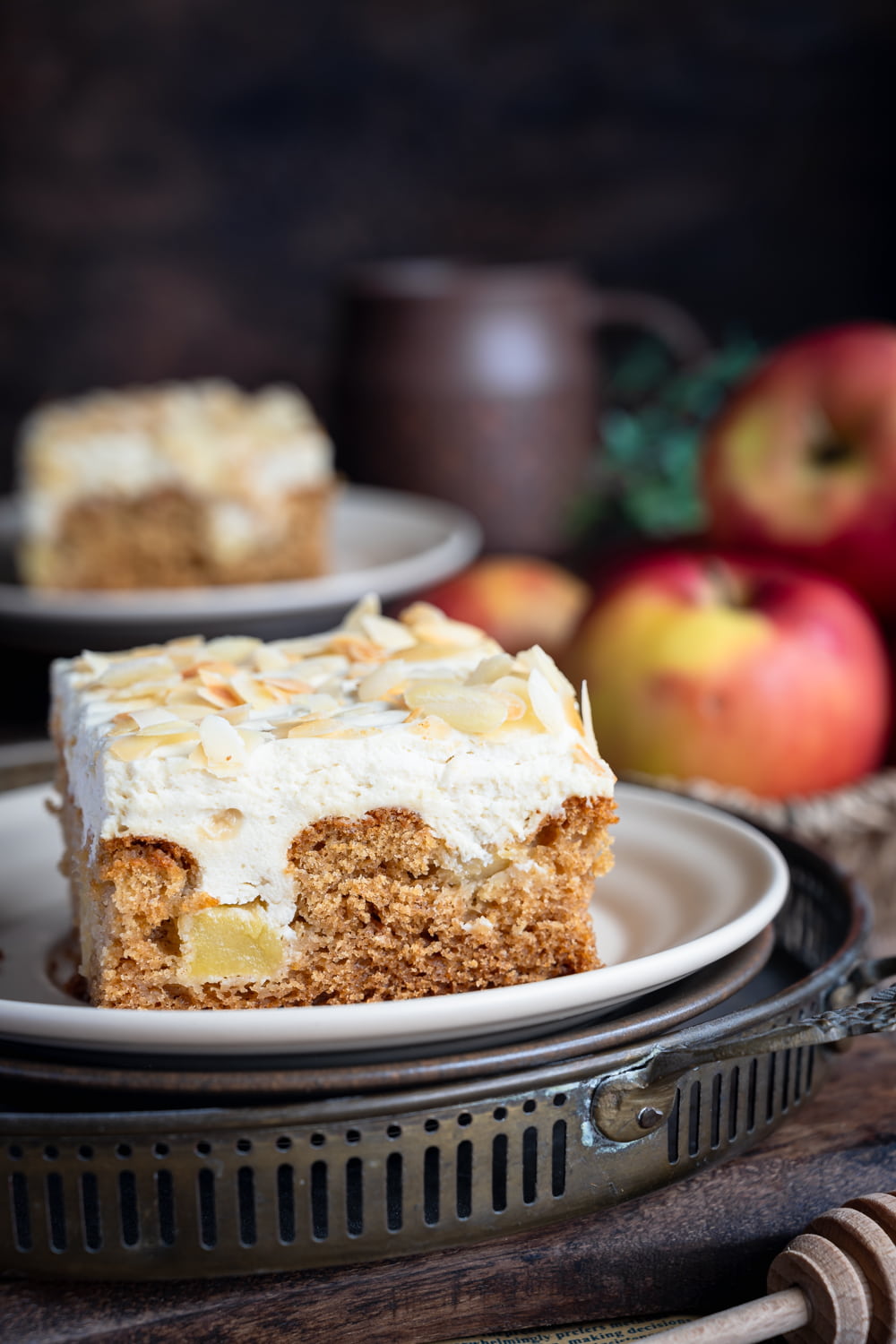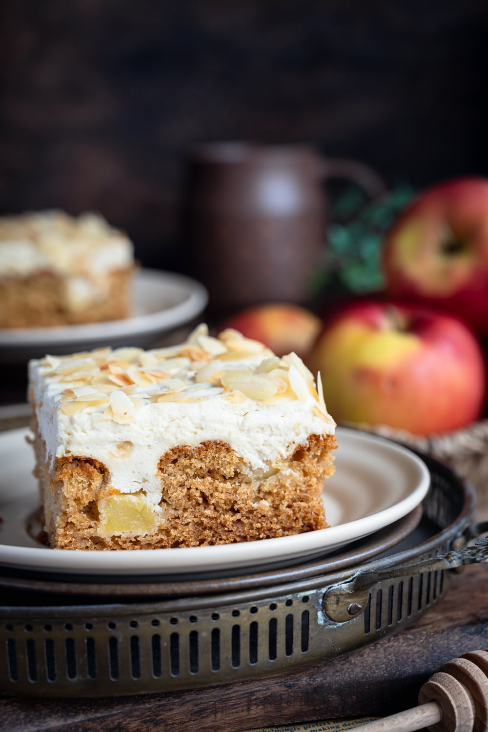 Krem z dodatkiem białej czekolady ma aksamitną konsystencję i pięknie dopełnia smak miodowego ciasta. Mimo obecności chałwy i czekolady deser nie jest przesłodzony. Dodatek jabłek w cieście nadaje mu lekkości i przyjemnej wilgotności.
