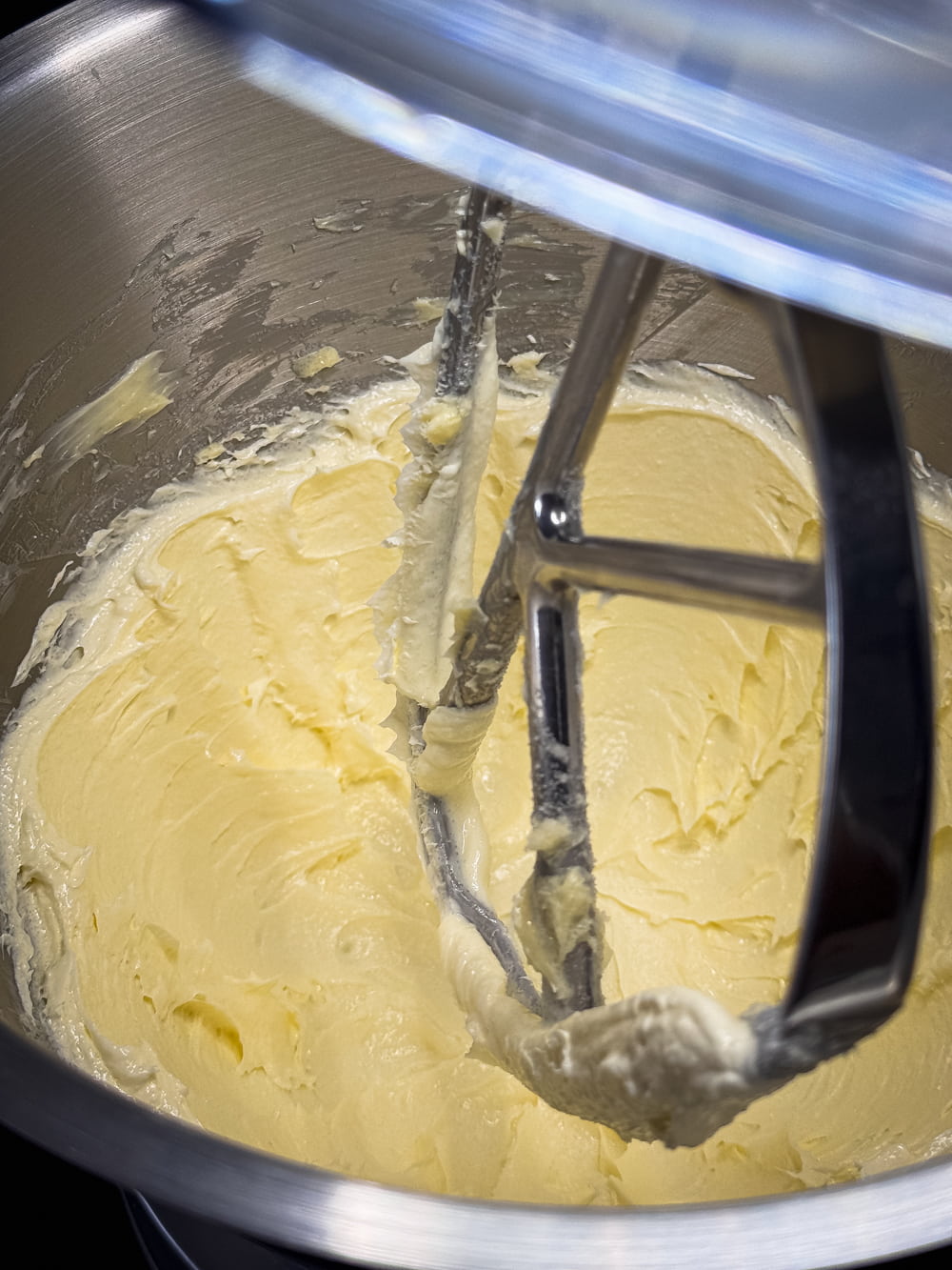 Miękkie masło ucieramy wraz z cukrem na puch (do białości).