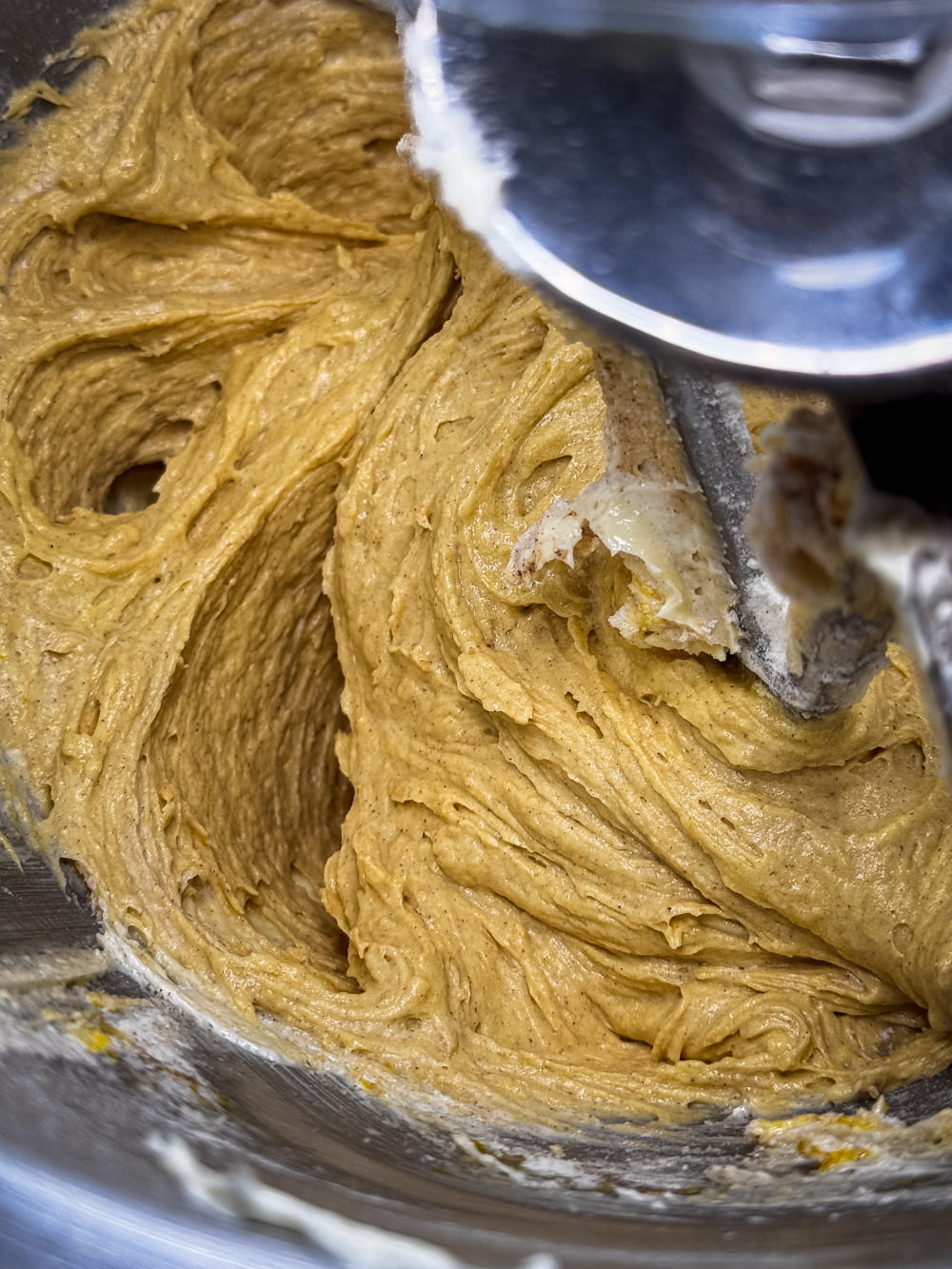 Składniki sypkie dodajemy do masy w 2 partiach, miksujemy na najmniejszych obrotach lub mieszamy szpatułką (niezbyt długo i koniecznie w jednym kierunku).