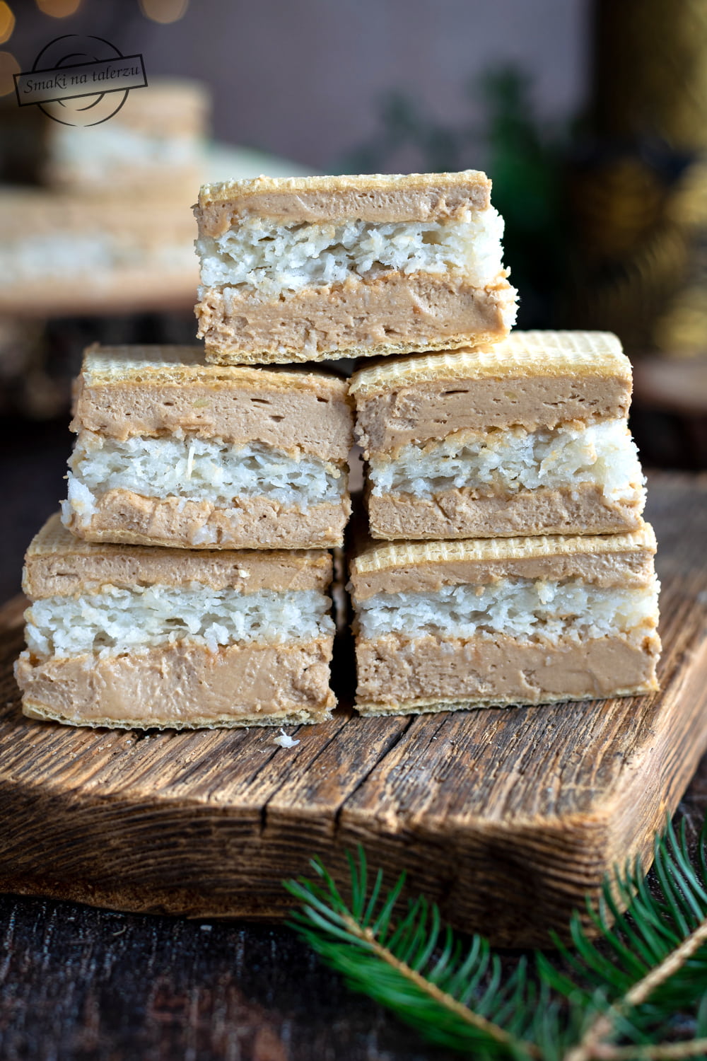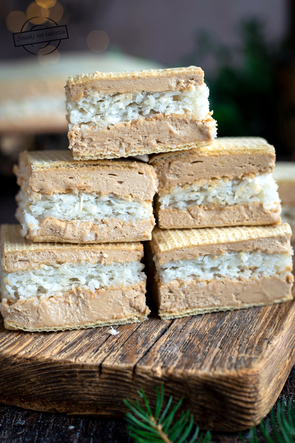 Wafle przycinamy do wielkości ciasta kokosowego.