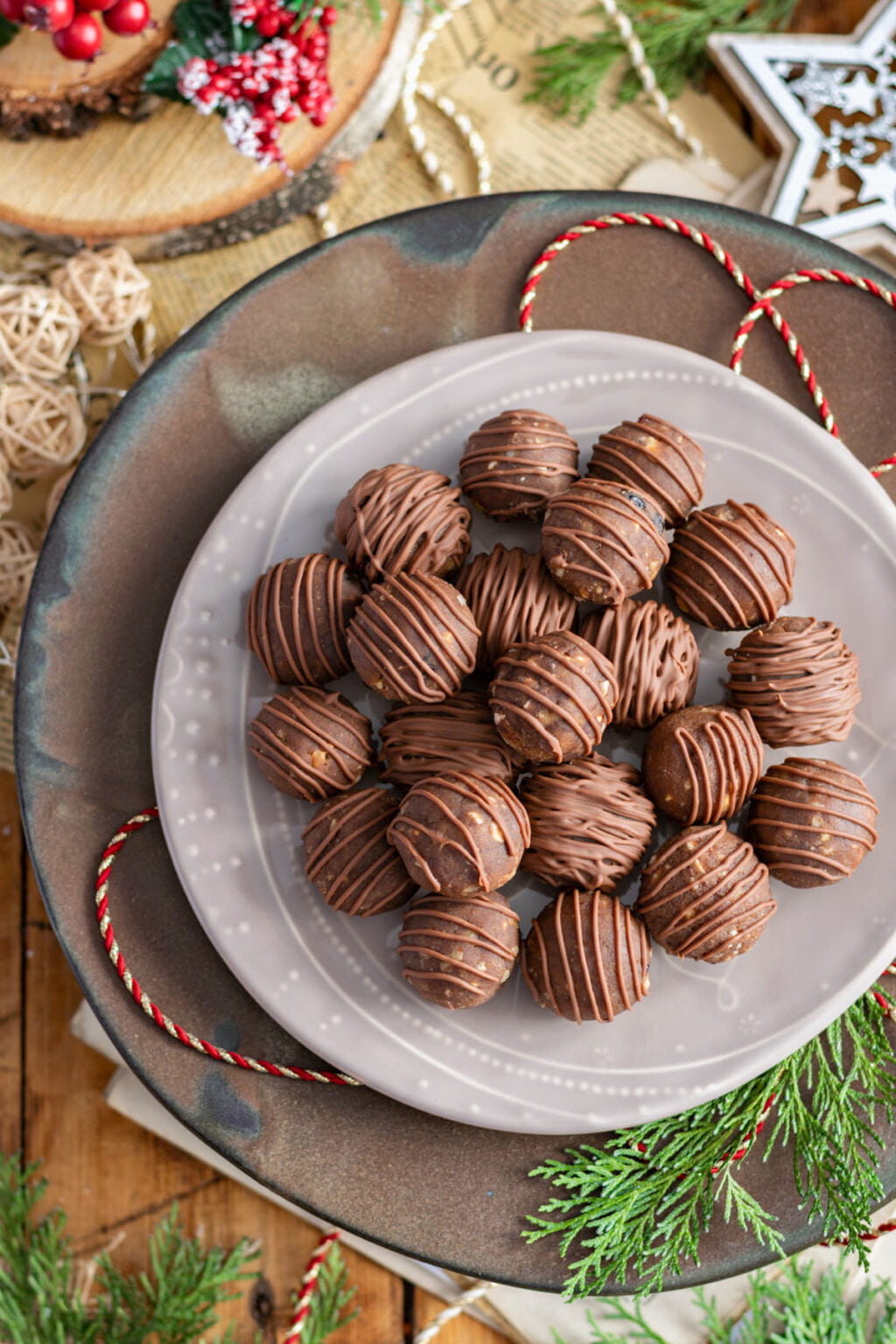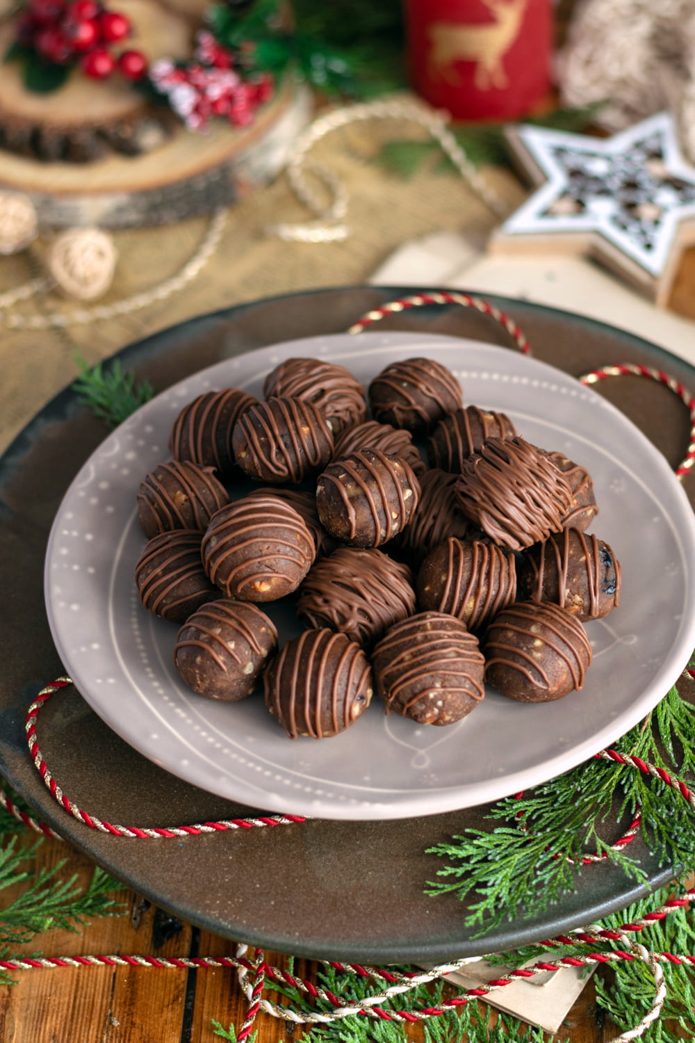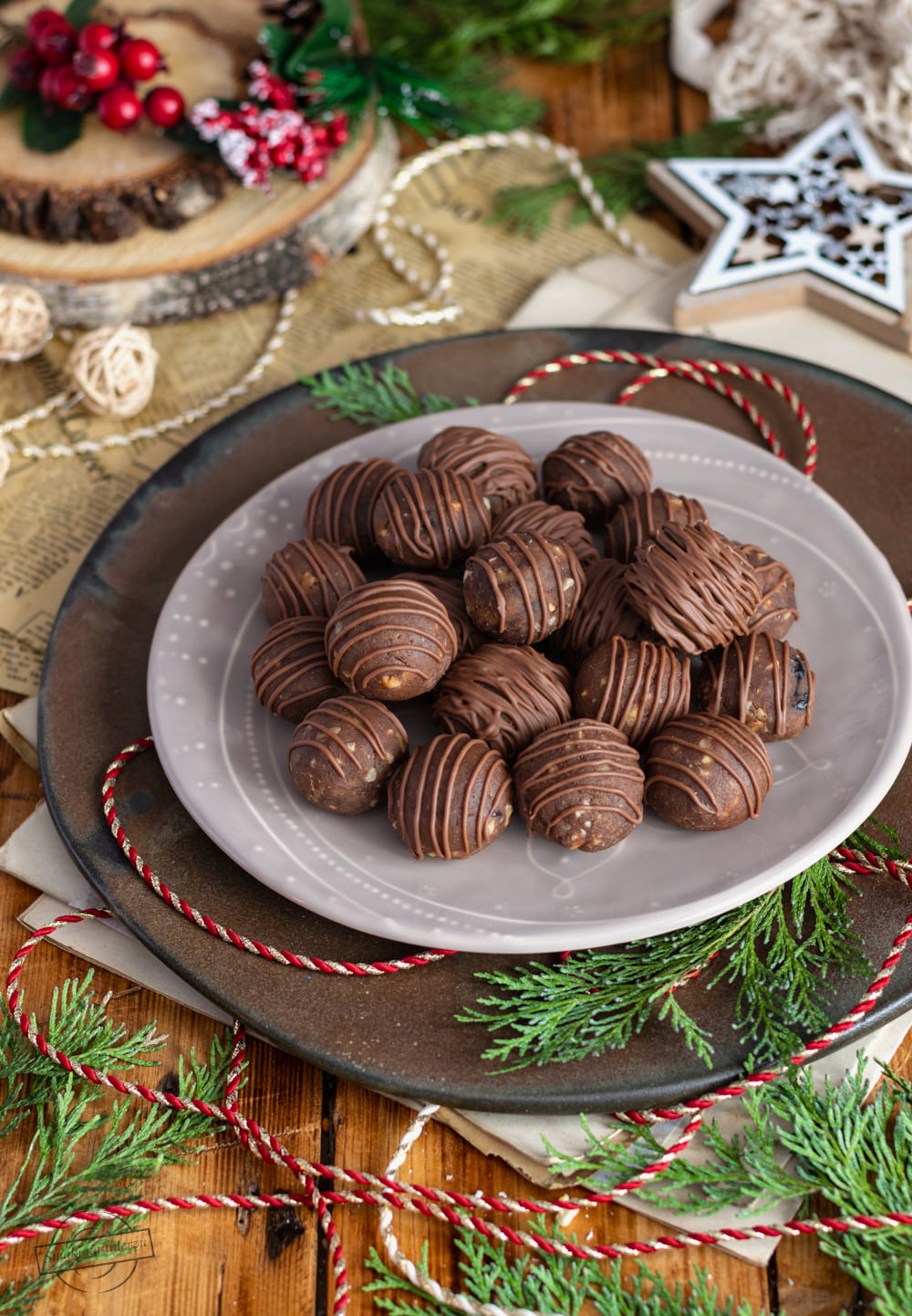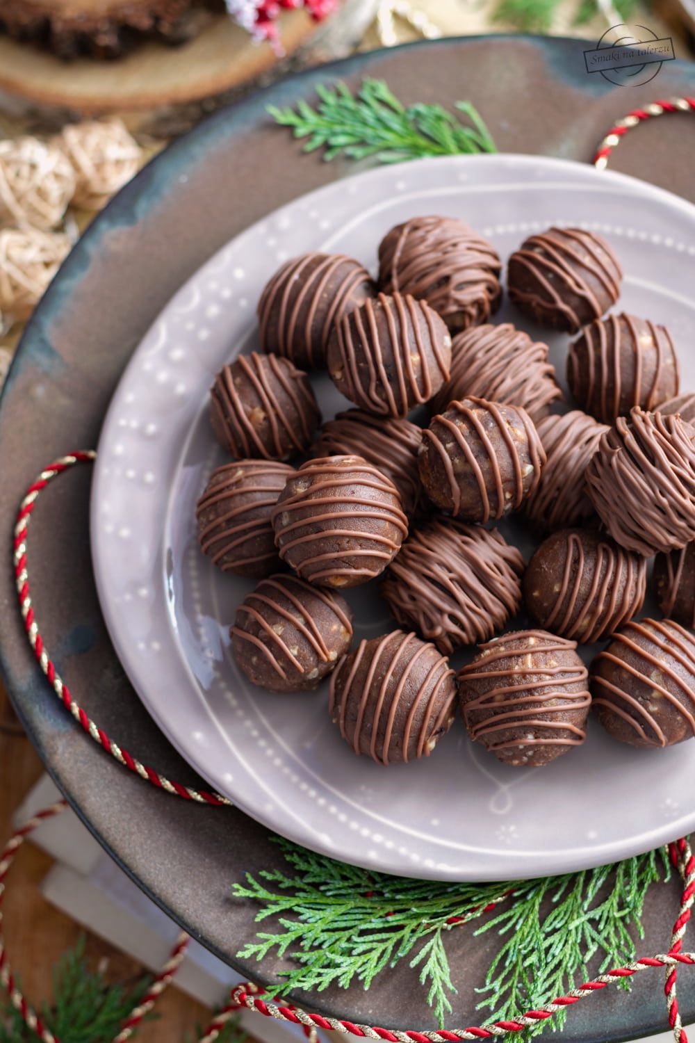 Bajaderki możemy obtoczyć w wiórkach kokosowych, kakao, mielonych herbatnikach lub orzechach/migdałach lub polać roztopioną czekoladą.