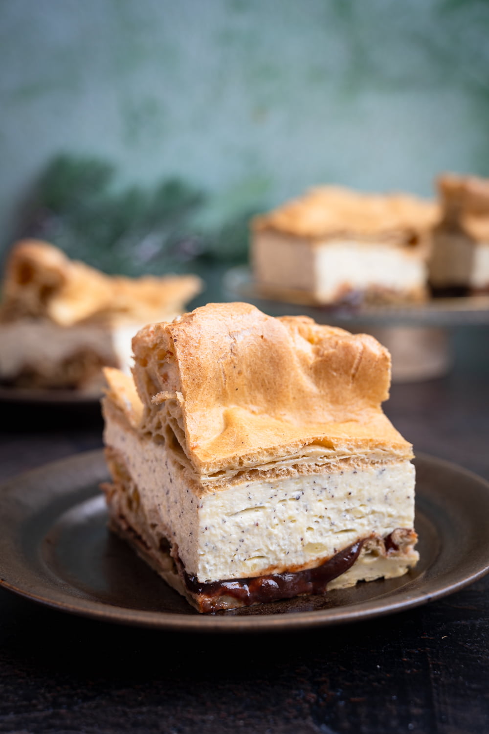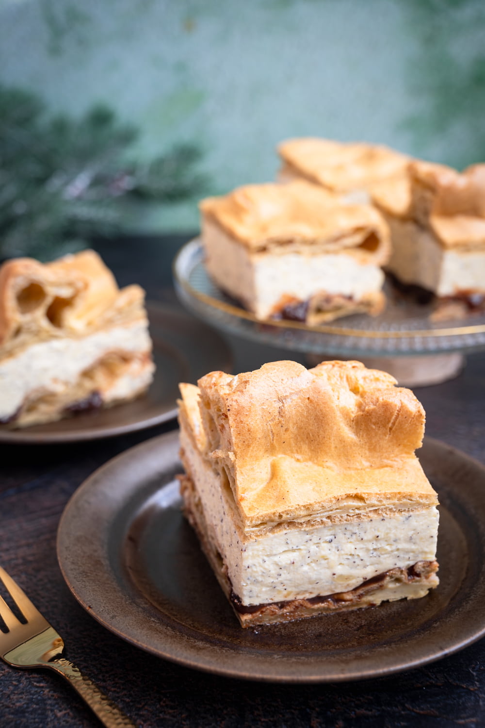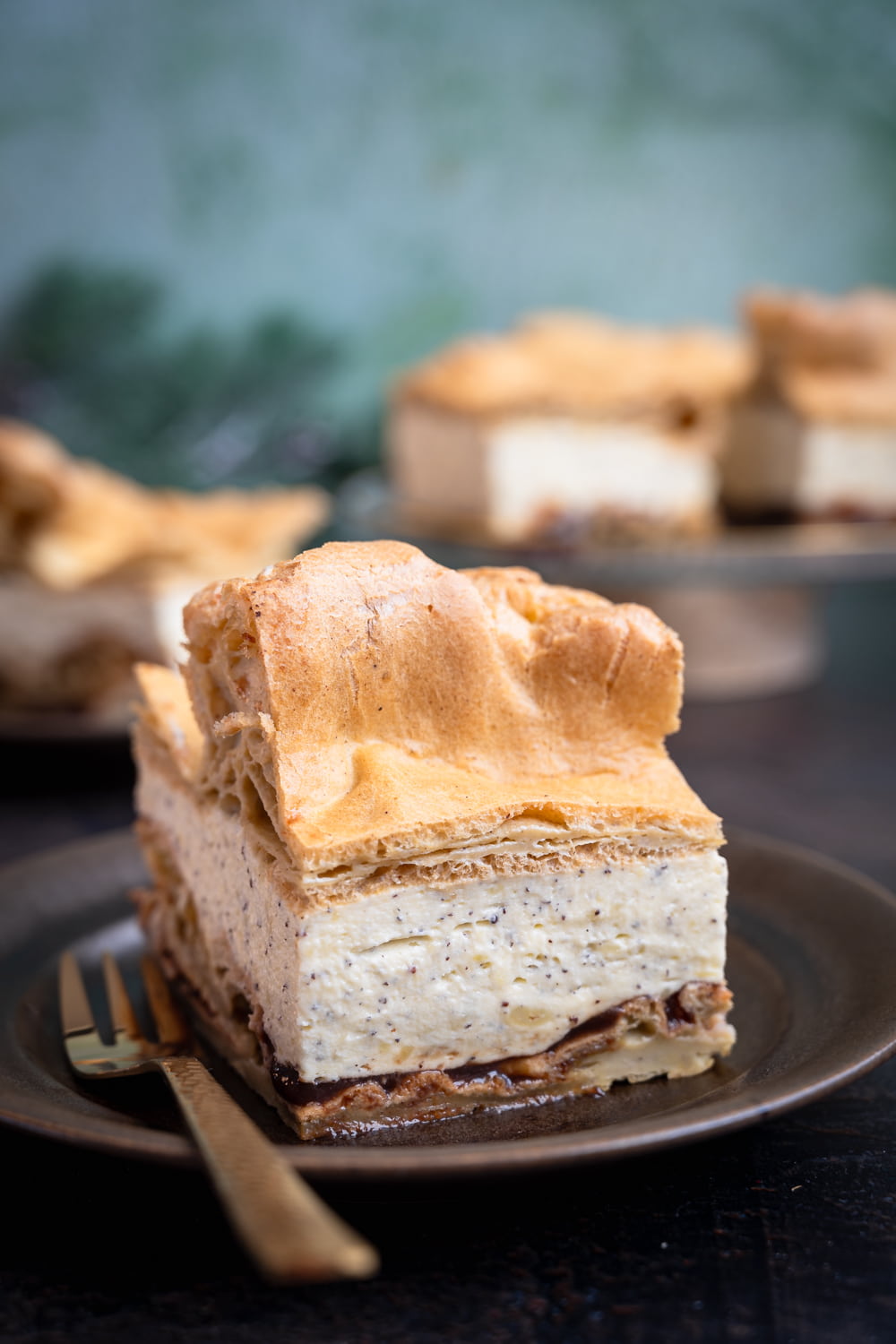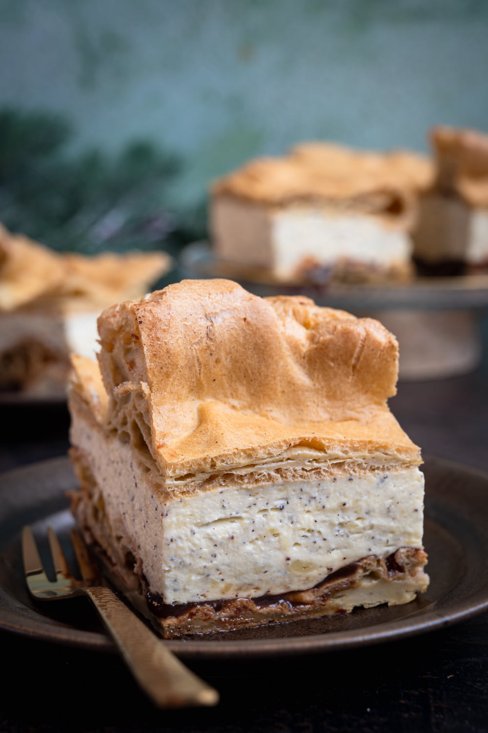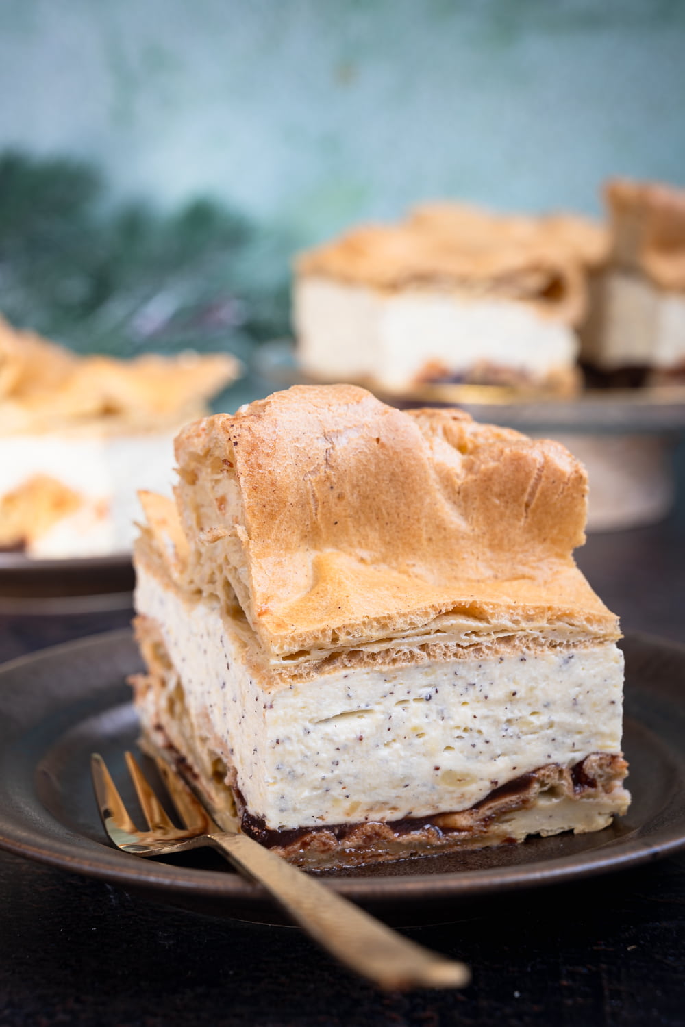 Karpatka to jedno z tych ciast, które od razu przywołuje we mnie duży sentyment. Tym razem przygotowałam ją jednak w nieco innym wydaniu. Tradycyjny krem wzbogaciłam o mielony mak, a do ciasta dodałam szczyptę przyprawy korzennej, w efekcie czego powstała świąteczna karpatka. To drobne zmiany, które nadały całości wyjątkowego zimowego charakteru.