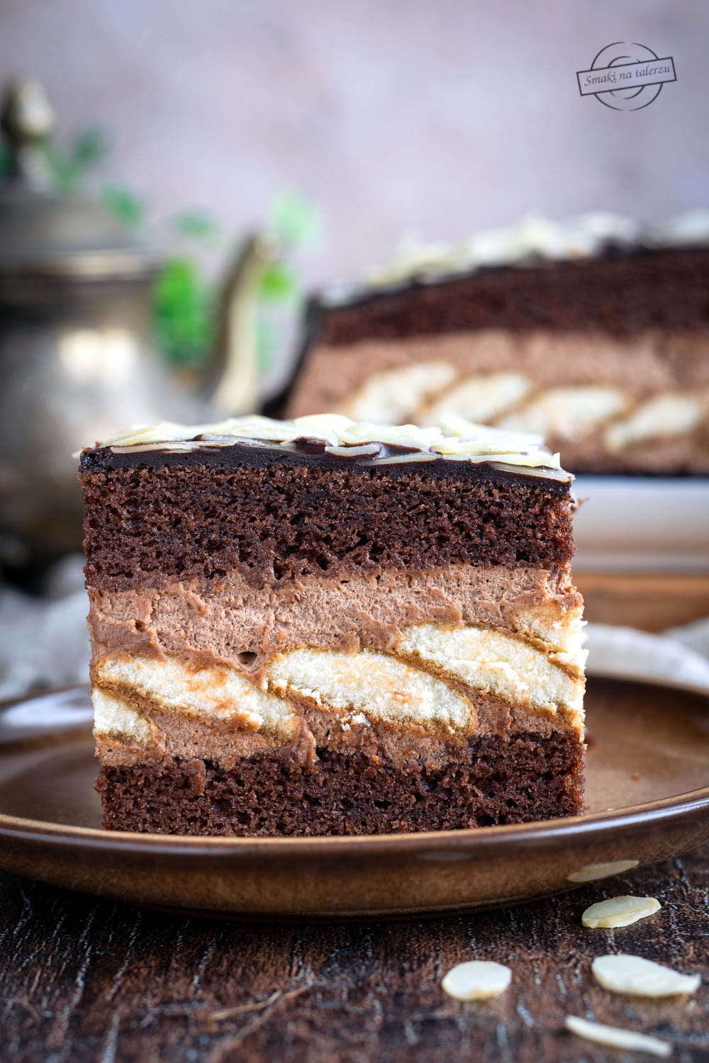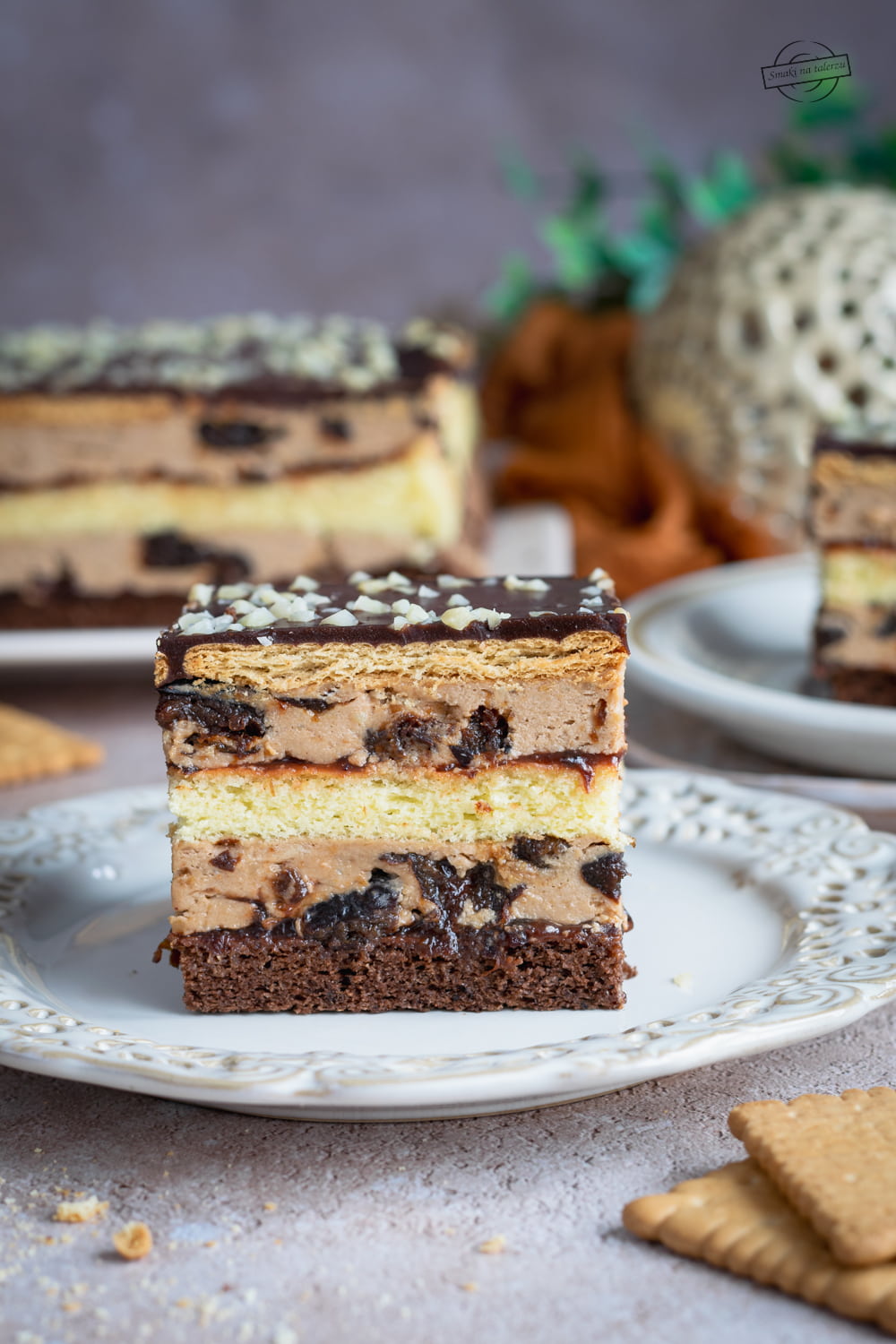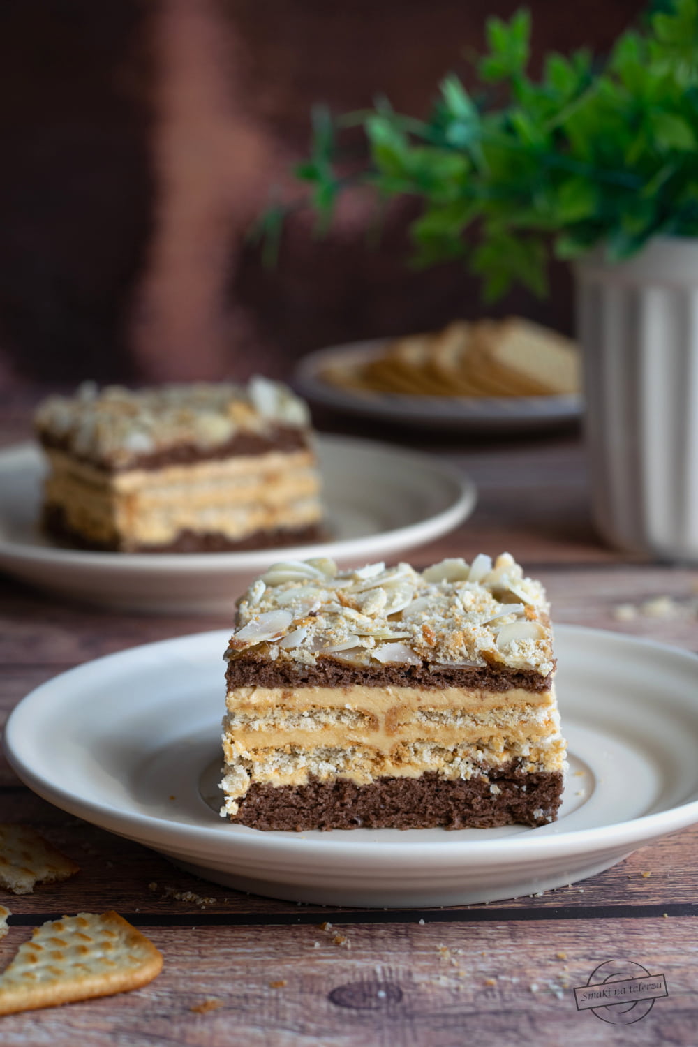Biszkopt kakaowy z krakersami i masą kajmakową
