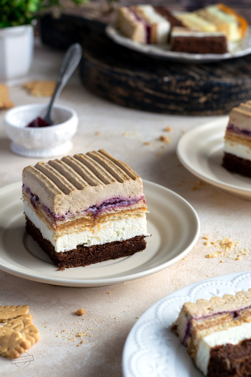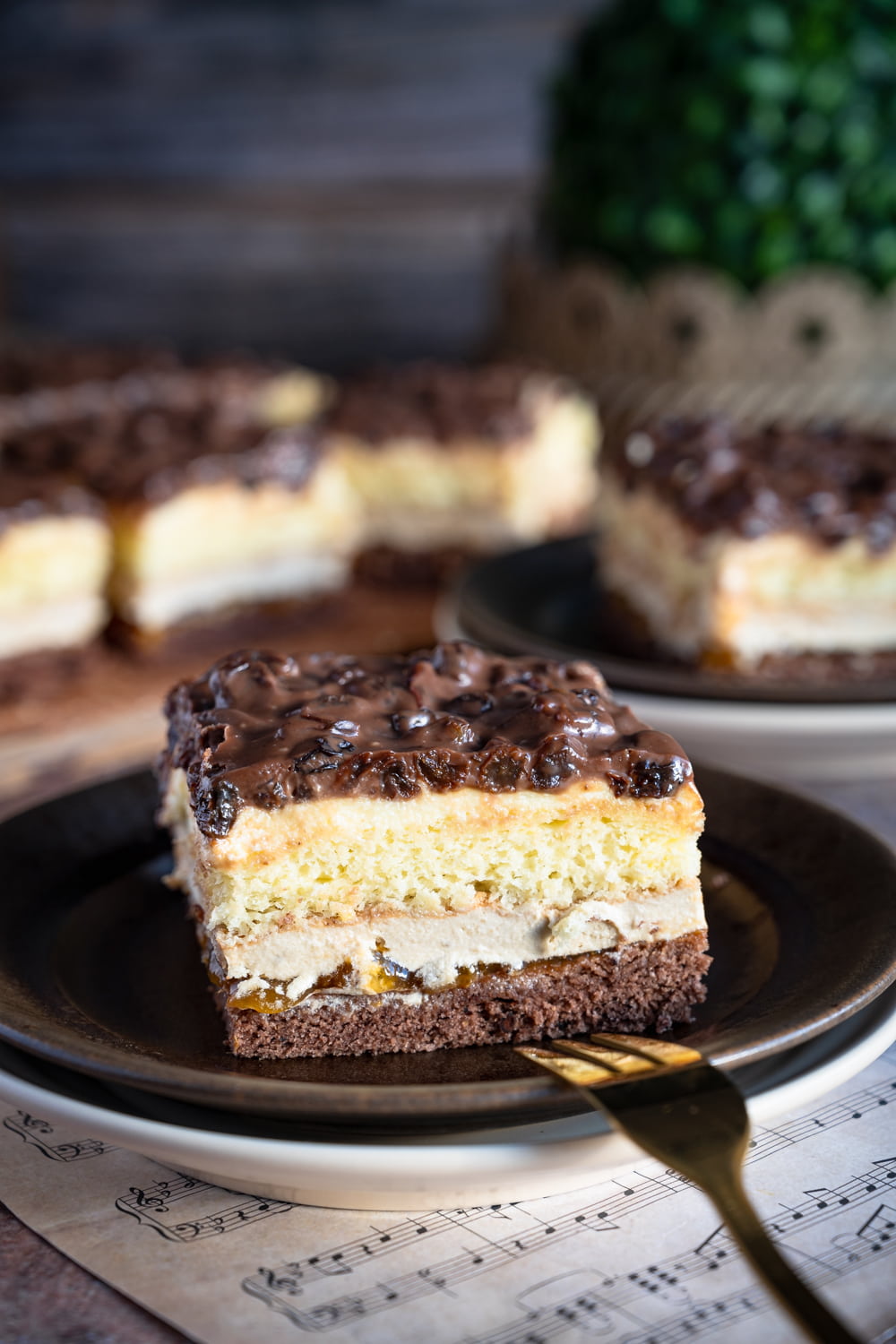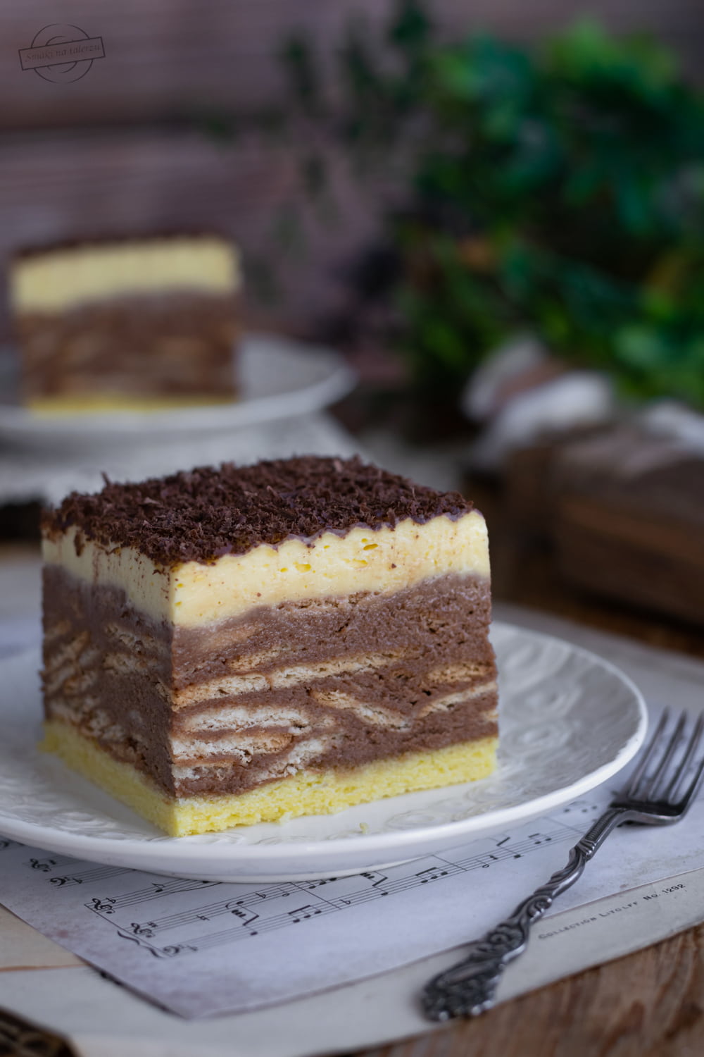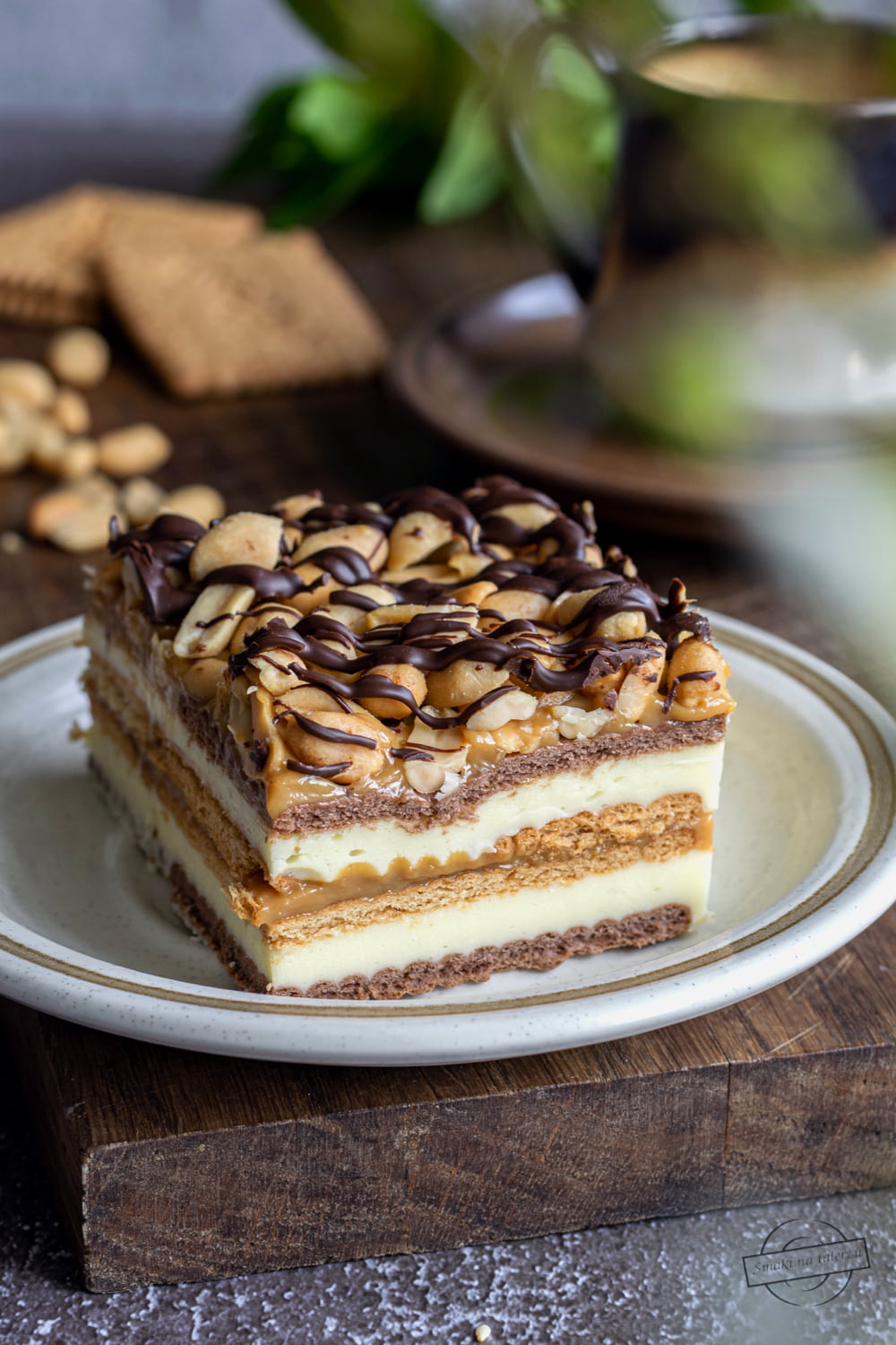 Biszkopt kakaowy z krakersami i masą kajmakową