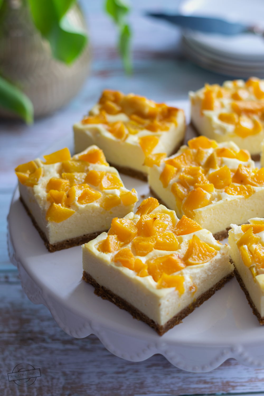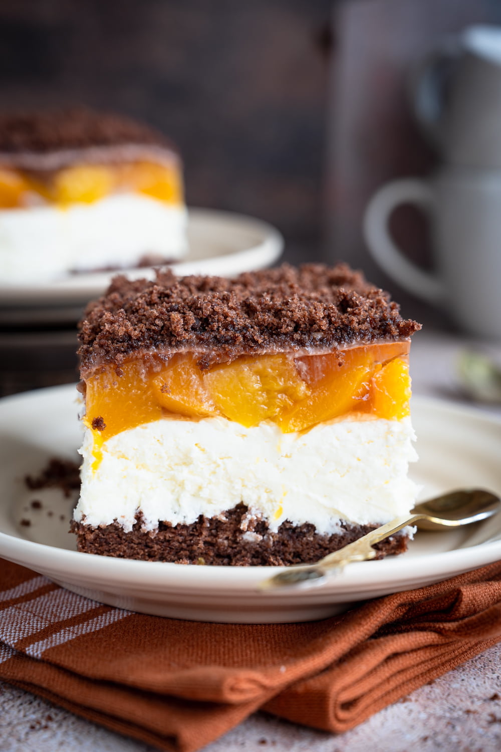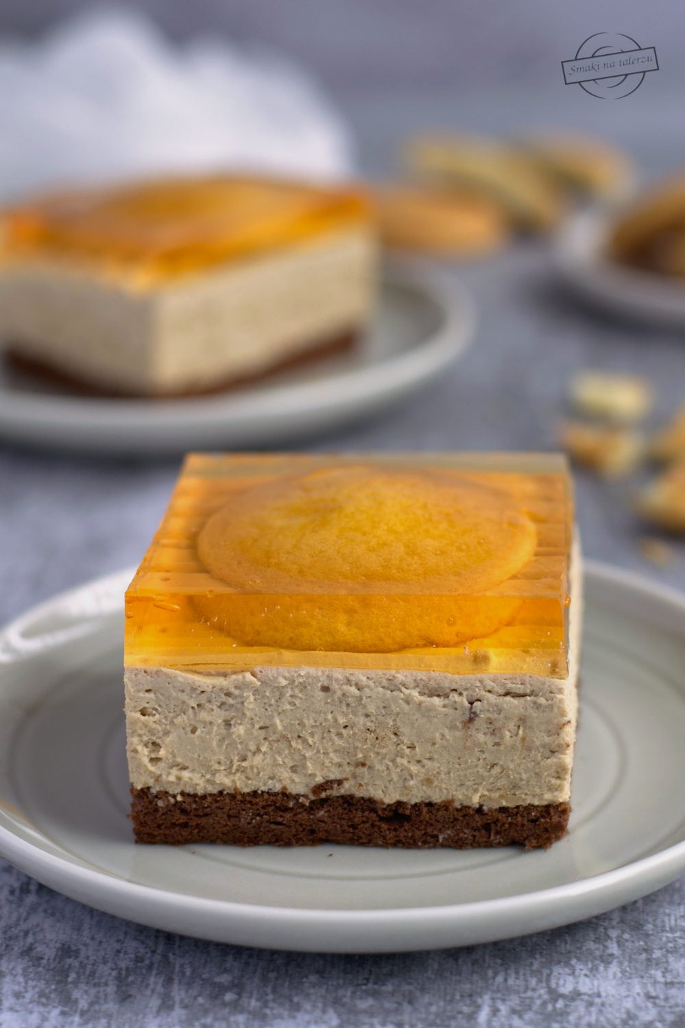 Biszkopt orzechowy z masą chałwową i brzoskwiniami