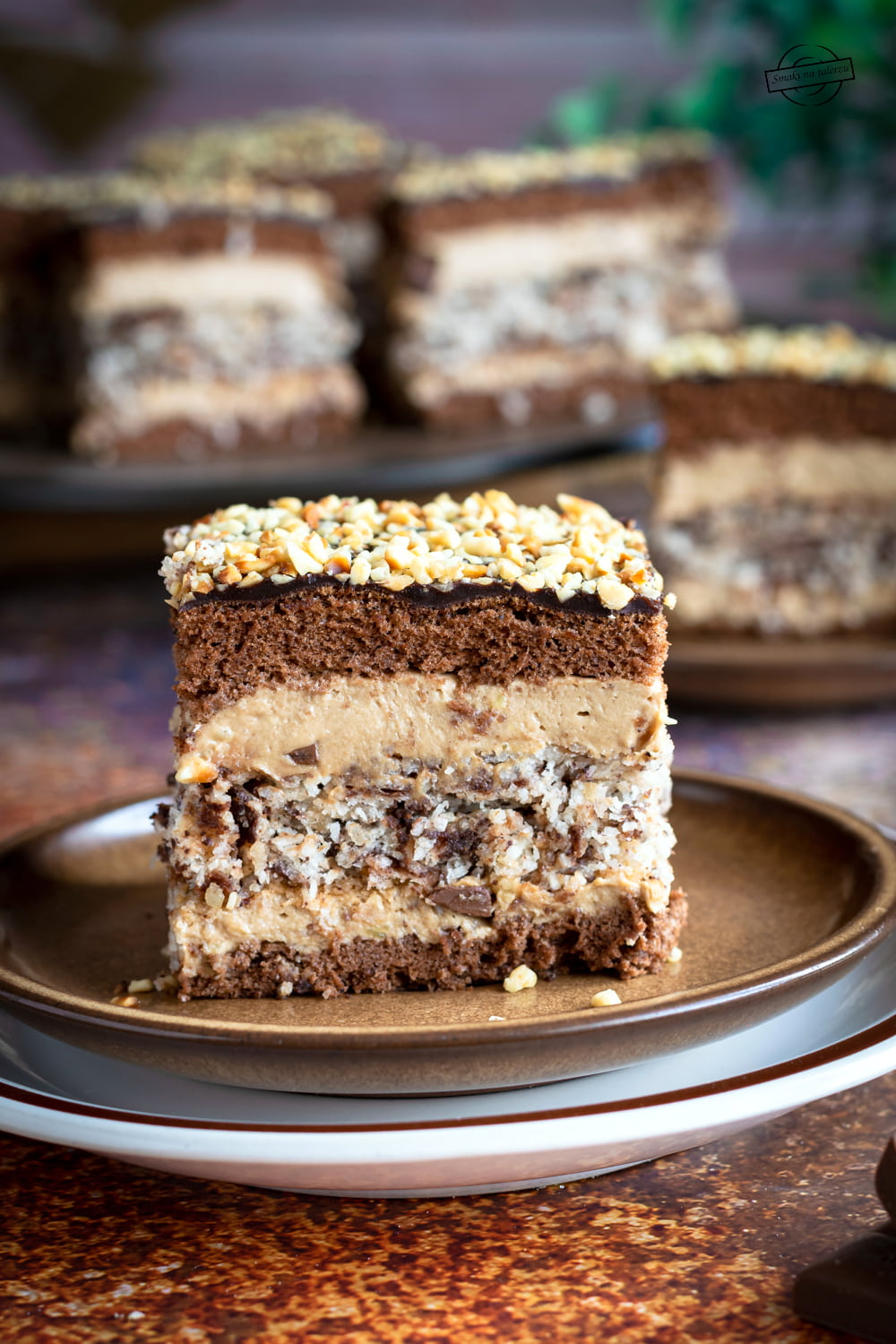 Ciasto biszkoptowo-orzechowe z masą kawową