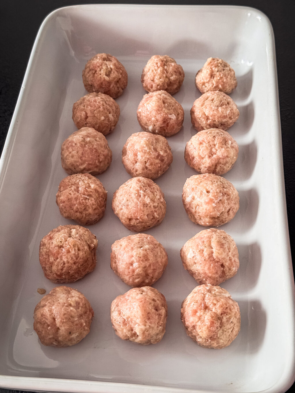 Formujemy kulki wielkości orzecha włoskiego. Układamy je w żaroodpornym naczyniu (zachowując odstępy).