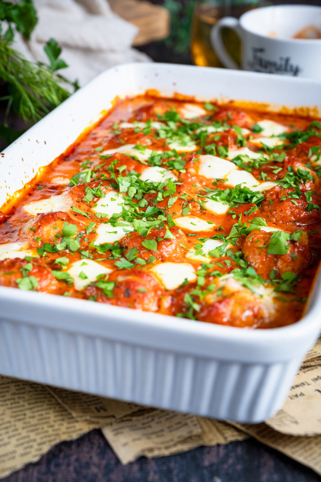 Pulpety to jedynie drobiowe mięso mielone z dodatkiem soli i pieprzu oraz serka kanapkowego. Powiem Ci, że w takim minimalistycznym wydaniu wyszły świetne. Zapieczone w pomidorowym sosie są niezwykle delikatne i mięciutkie.