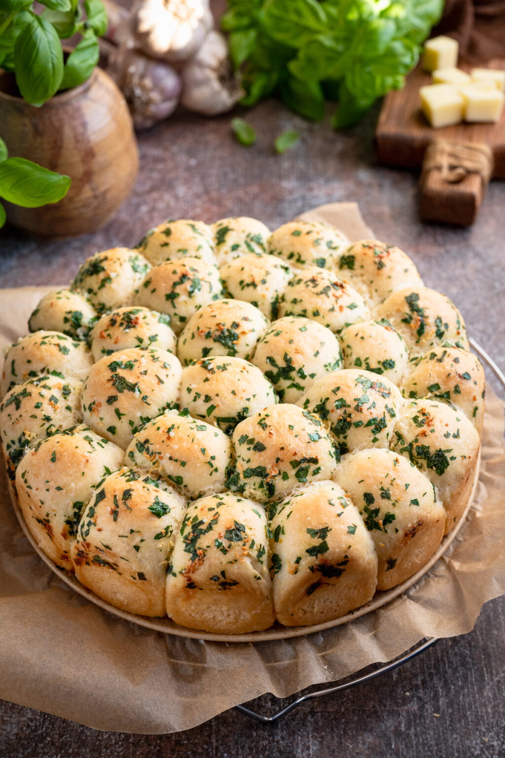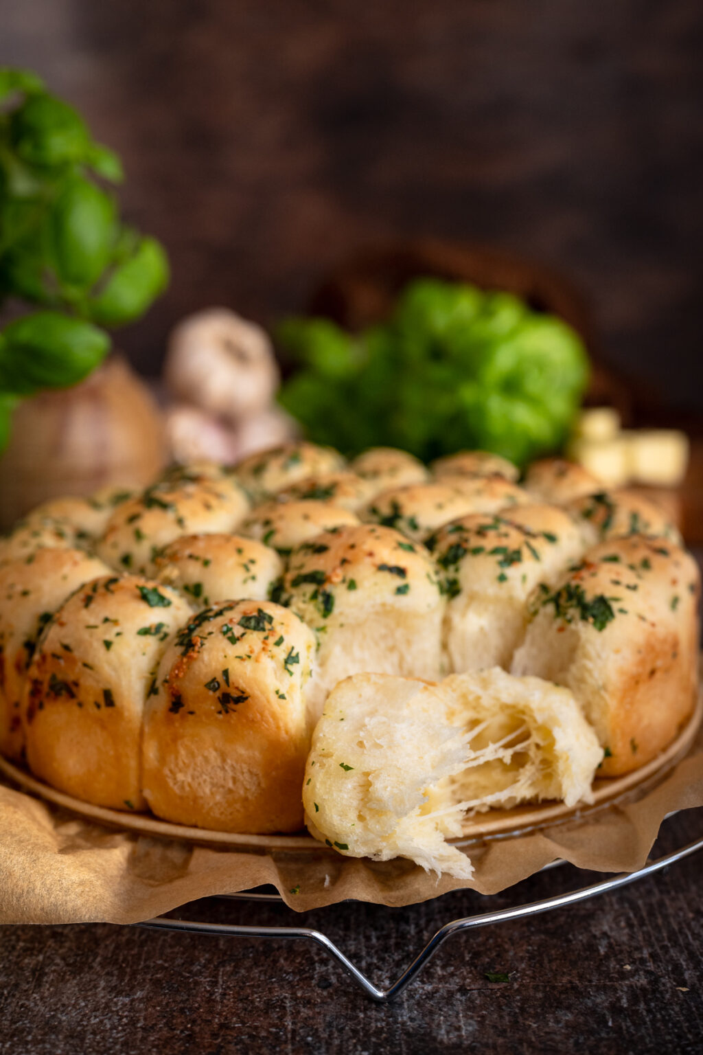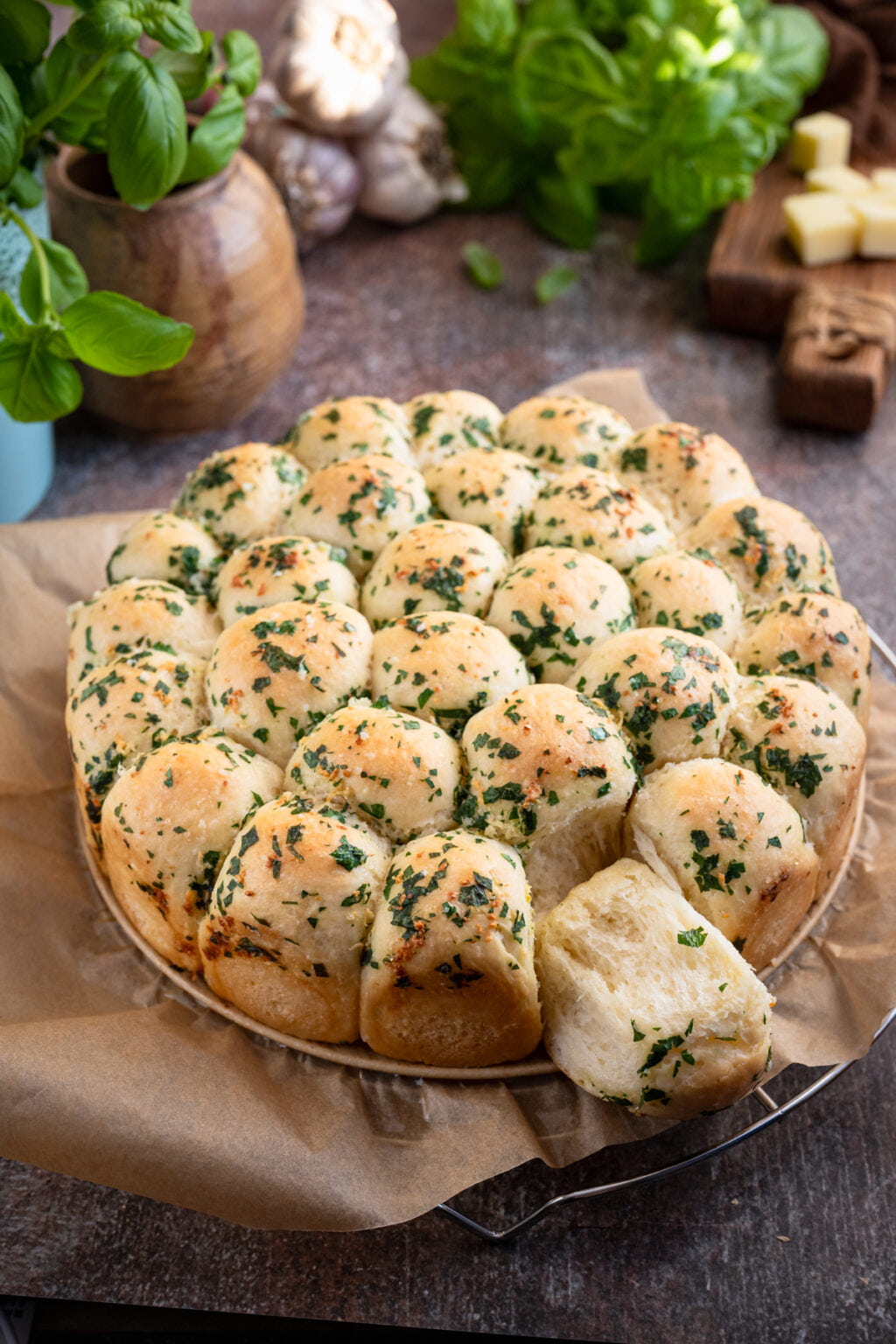 Są takie wypieki, które znikają ze stołu szybciej, niż zdążą wystygnąć i te drożdżowe kulki z serem zdecydowanie do nich należą. Miękkie, puszyste, z ciągnącą się mozzarellą w środku i intensywnie pachnącym masłem czosnkowo-pietruszkowym na wierzchu.