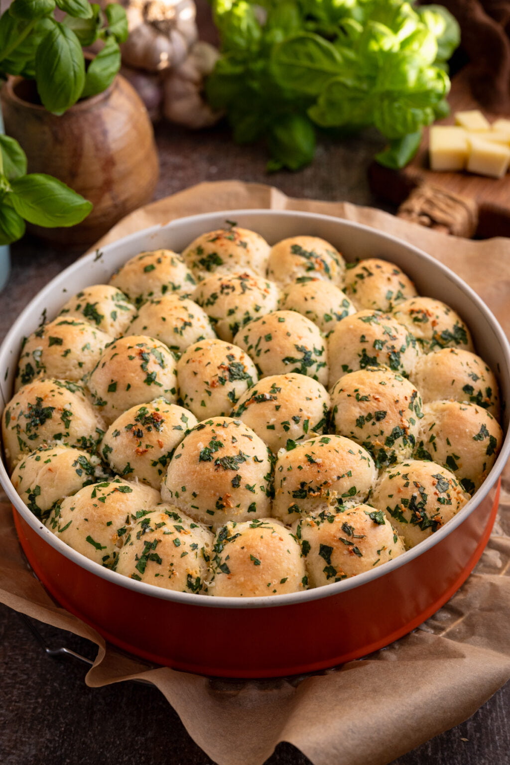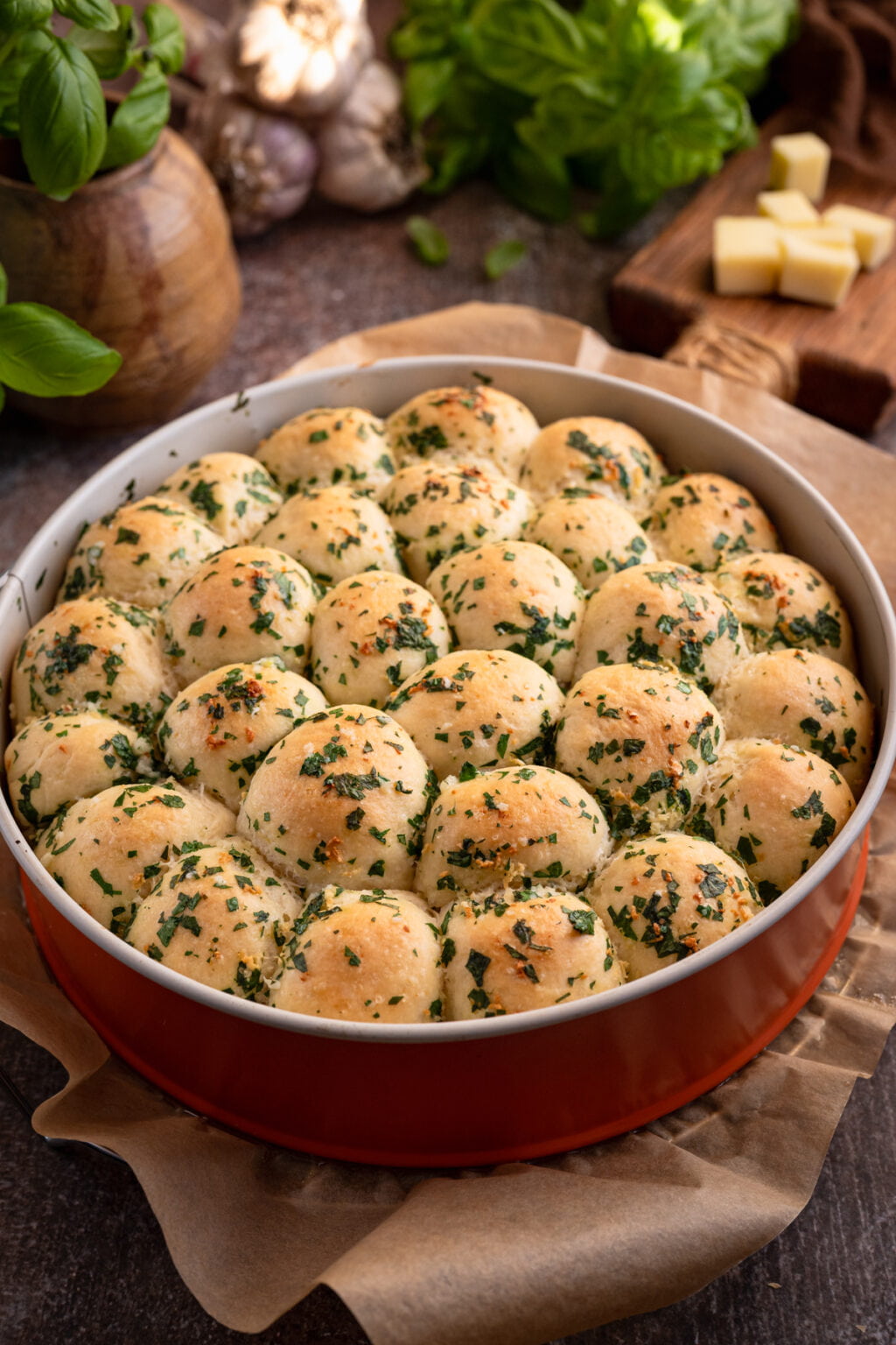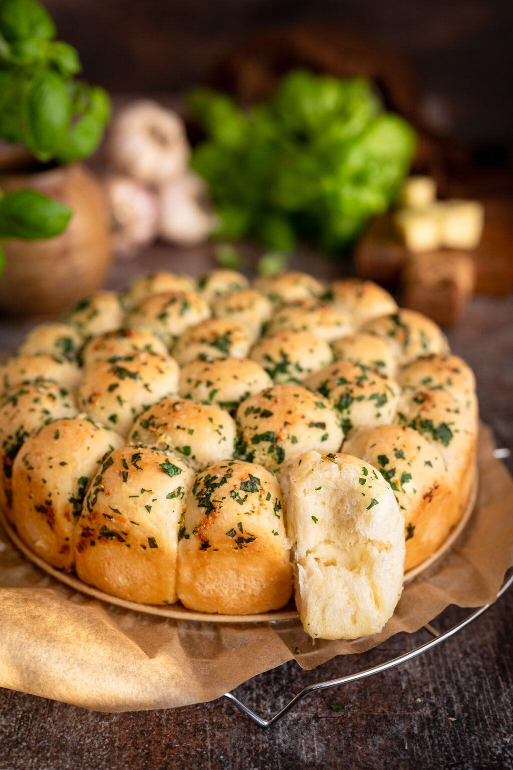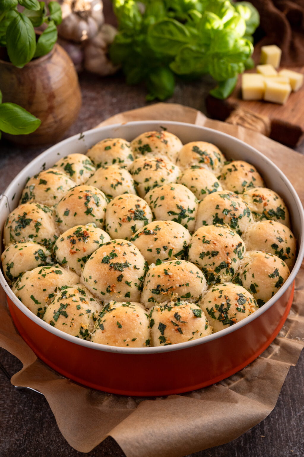 Są takie wypieki, które znikają ze stołu szybciej, niż zdążą wystygnąć i te drożdżowe kulki z serem zdecydowanie do nich należą. Miękkie, puszyste, z ciągnącą się mozzarellą w środku i intensywnie pachnącym masłem czosnkowo-pietruszkowym na wierzchu.