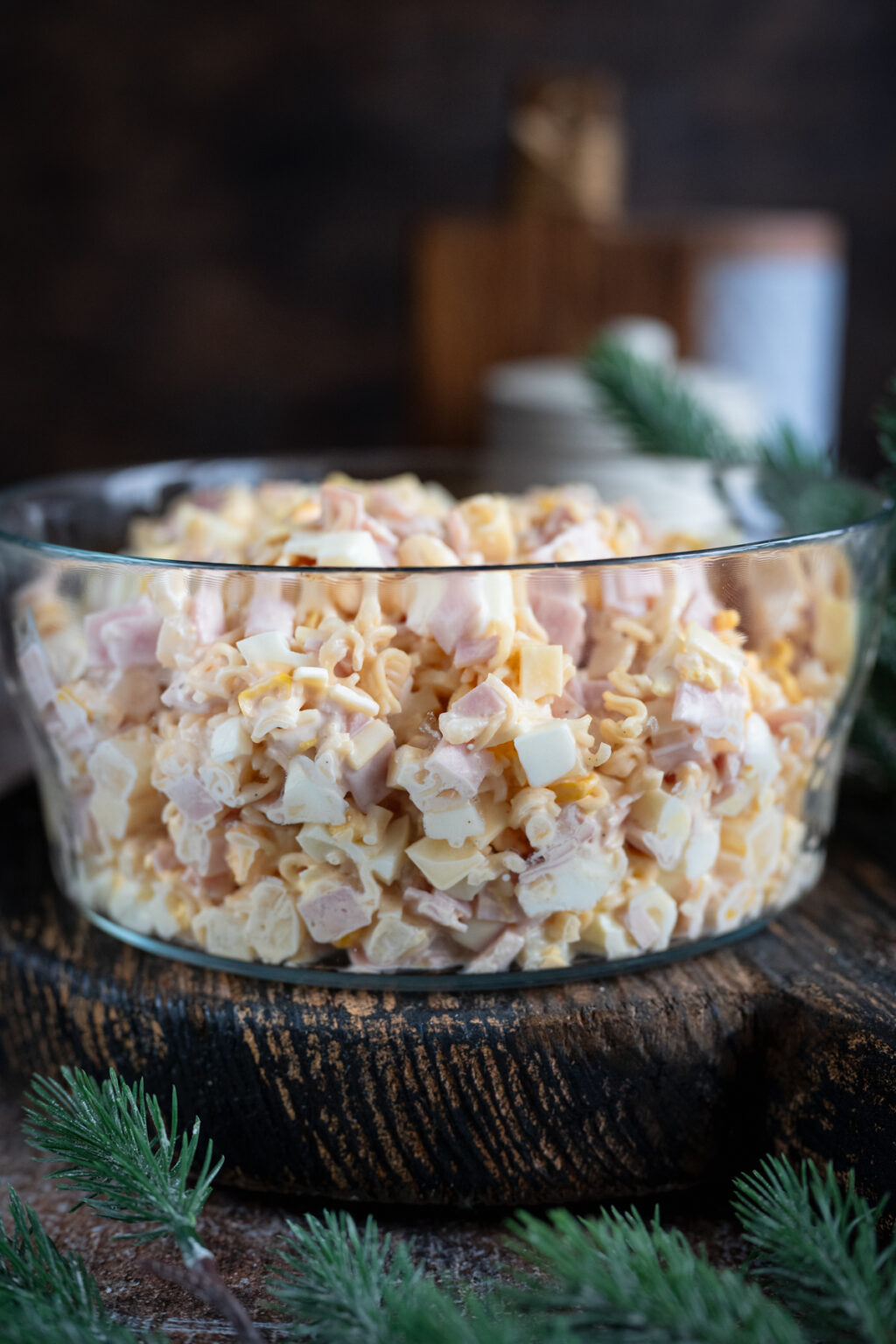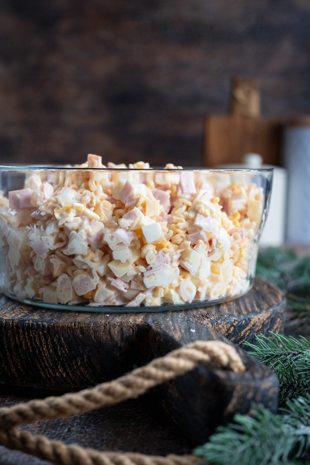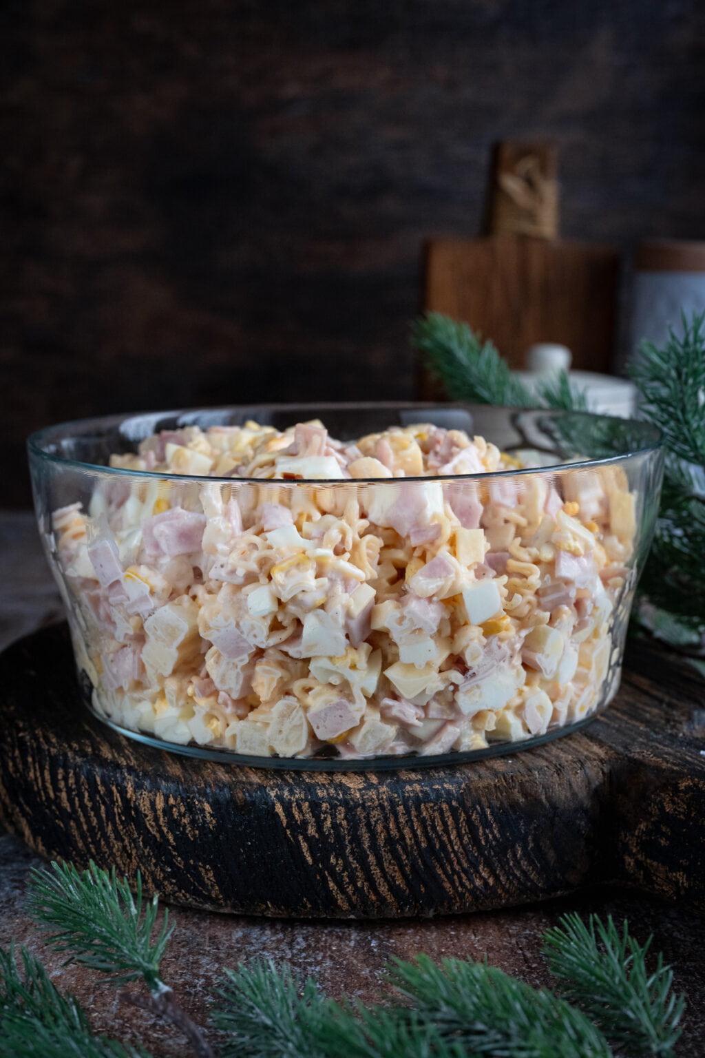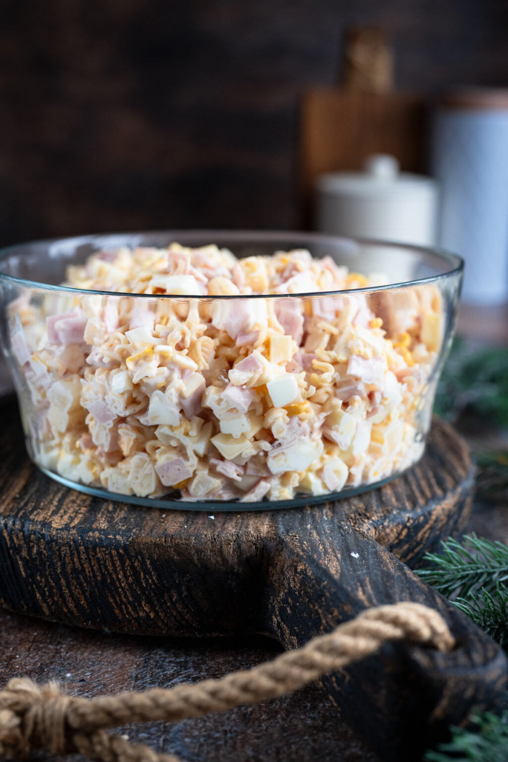 Ta sałatka to taki imprezowy klasyk, który wielu osobom kojarzy się z domówkami sprzed lat, rodzinnymi spotkaniami i stołami uginającymi się od „wszystkiego po trochu” 😉