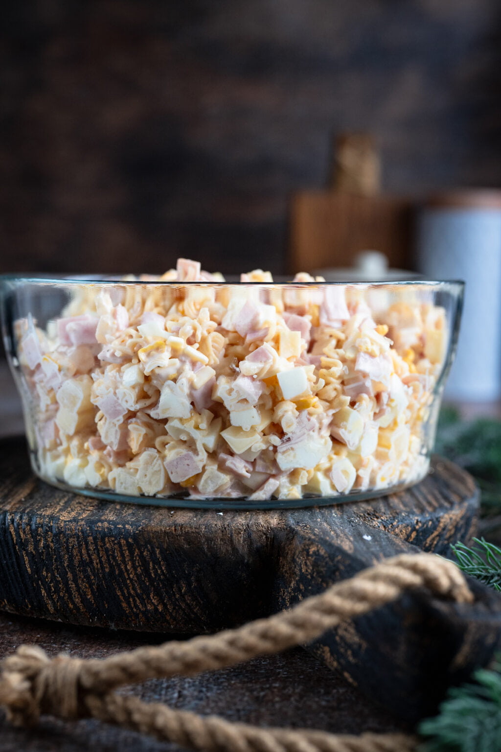 To sałatka, która nie udaje nowoczesnej, nie próbuje być fit ani „na pokaz”. Ma być szybka do zrobienia, smaczna, treściwa i jak szybko się ją robi, tak szybko ma zniknąć z miski. U nas się to udało. Idealna na imprezy, święta, spotkania rodzinne i wszędzie tam, gdzie sprawdzone klasyki są zawsze mile widziane.