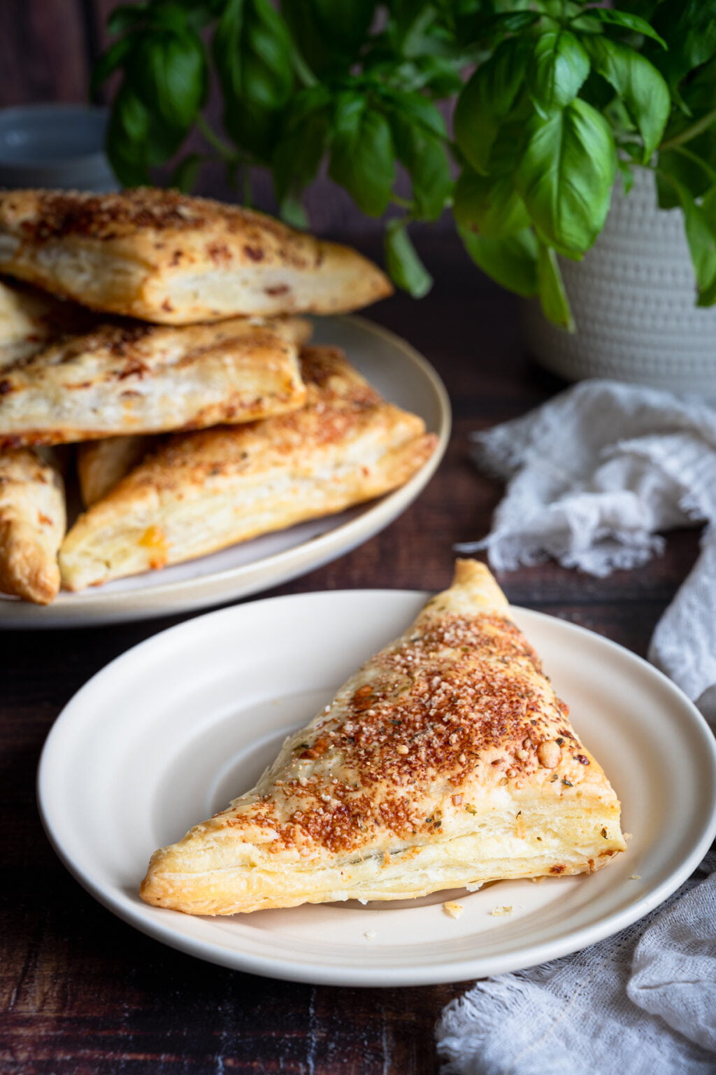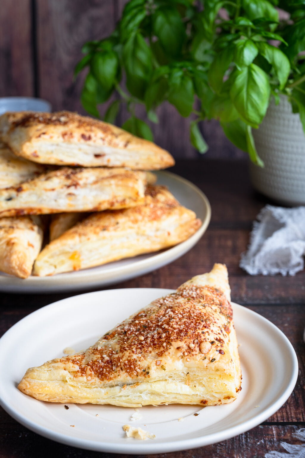 Trójkąty z ciasta francuskiego z salami, serem i ananasem