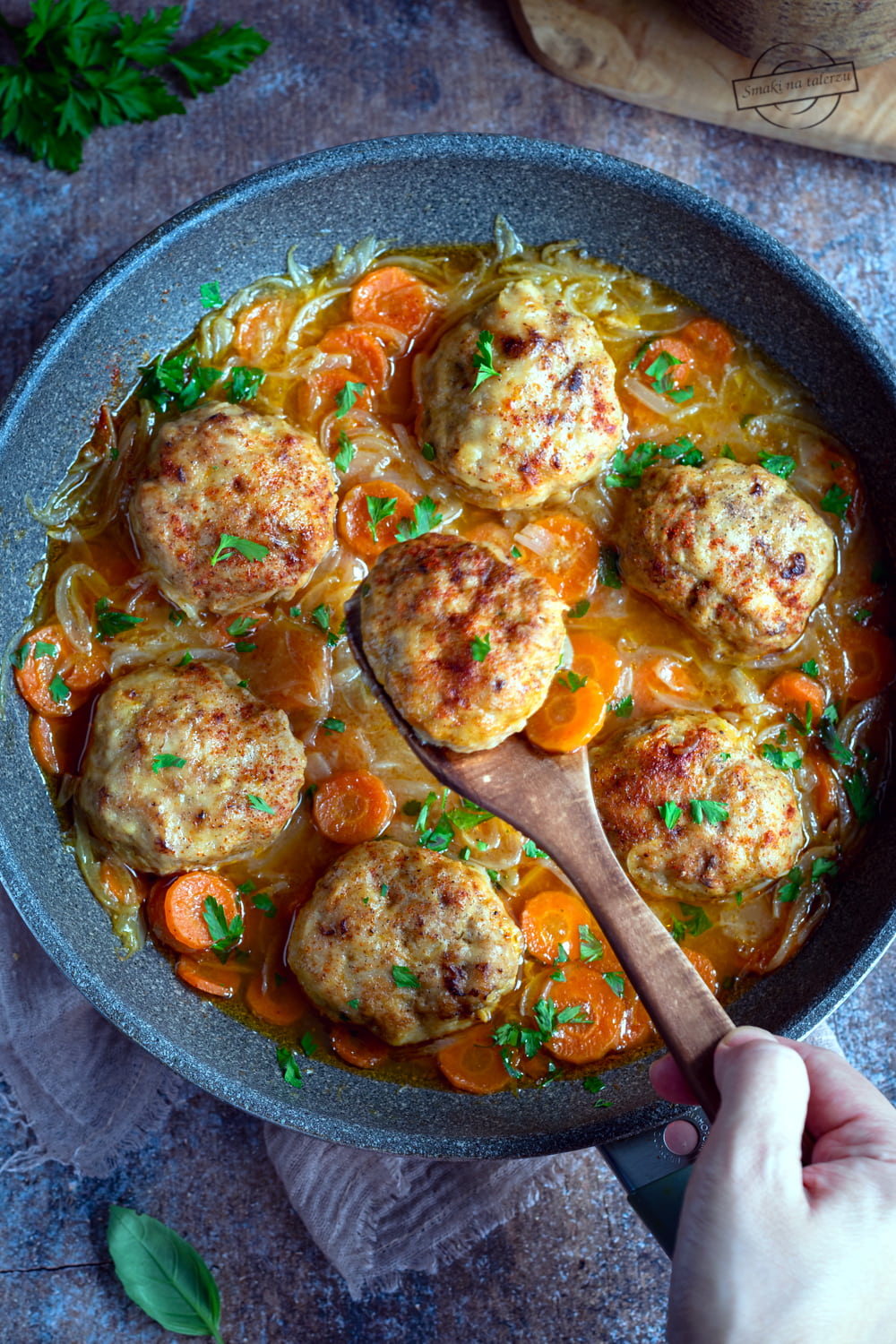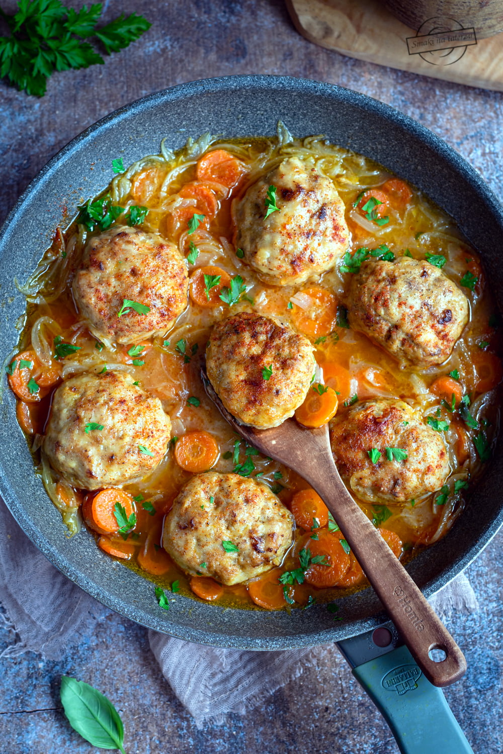 Kotleciki drobiowe w sosie cebulowym z marchewką – wykonanie: