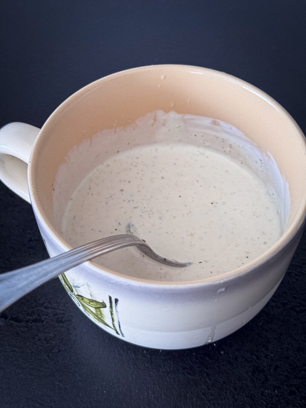 Majonez łączymy z musztardą, sokiem z cytryny oraz jogurtem greckim. Doprawiamy do smaku ziołami prowansalskimi oraz solą i pieprzem.