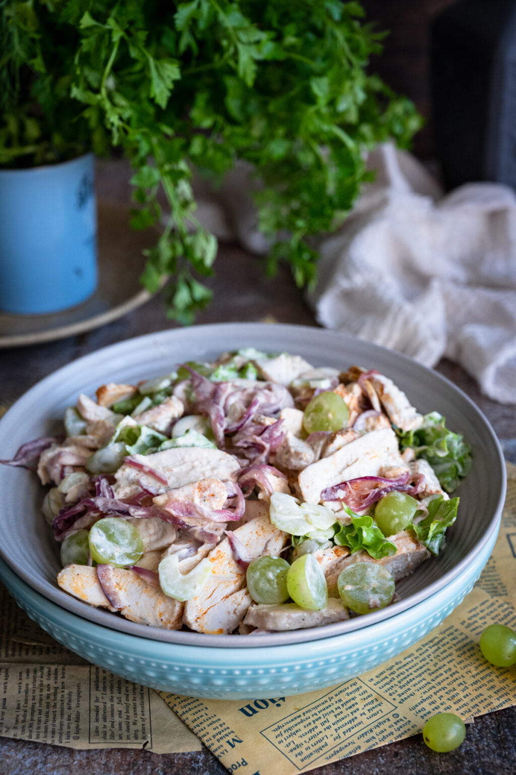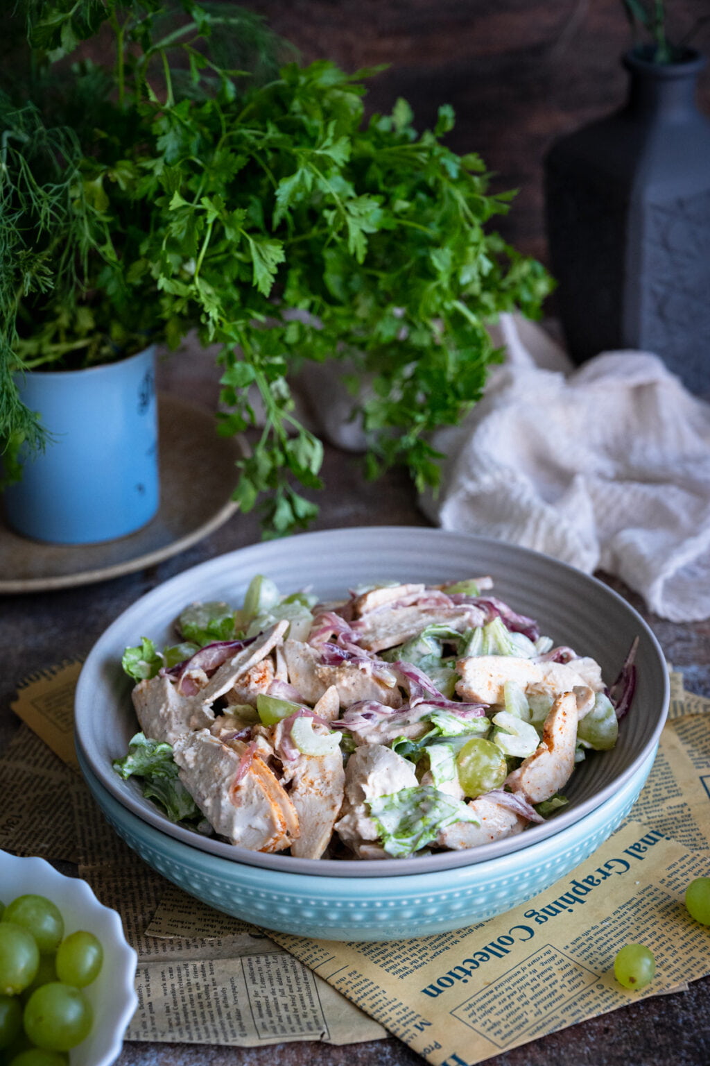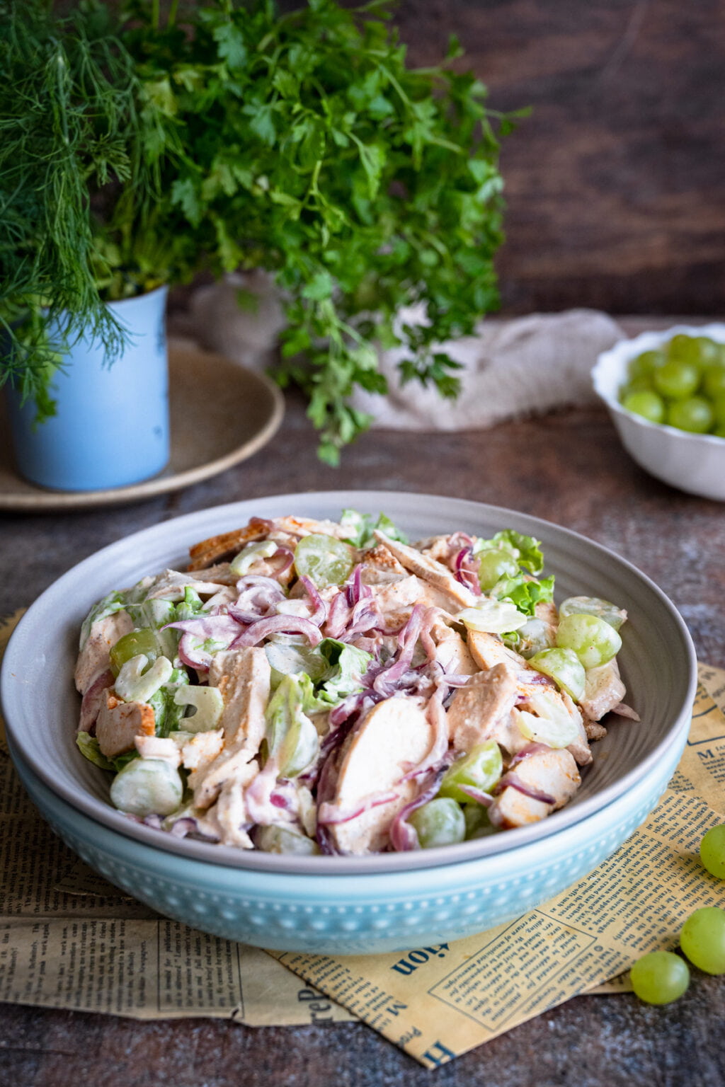 Sałatka z pieczonym kurczakiem, selerem naciowym i winogronami
