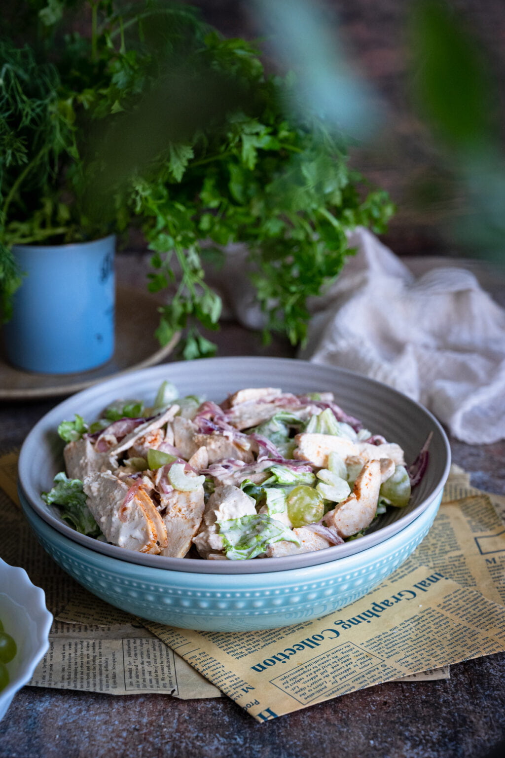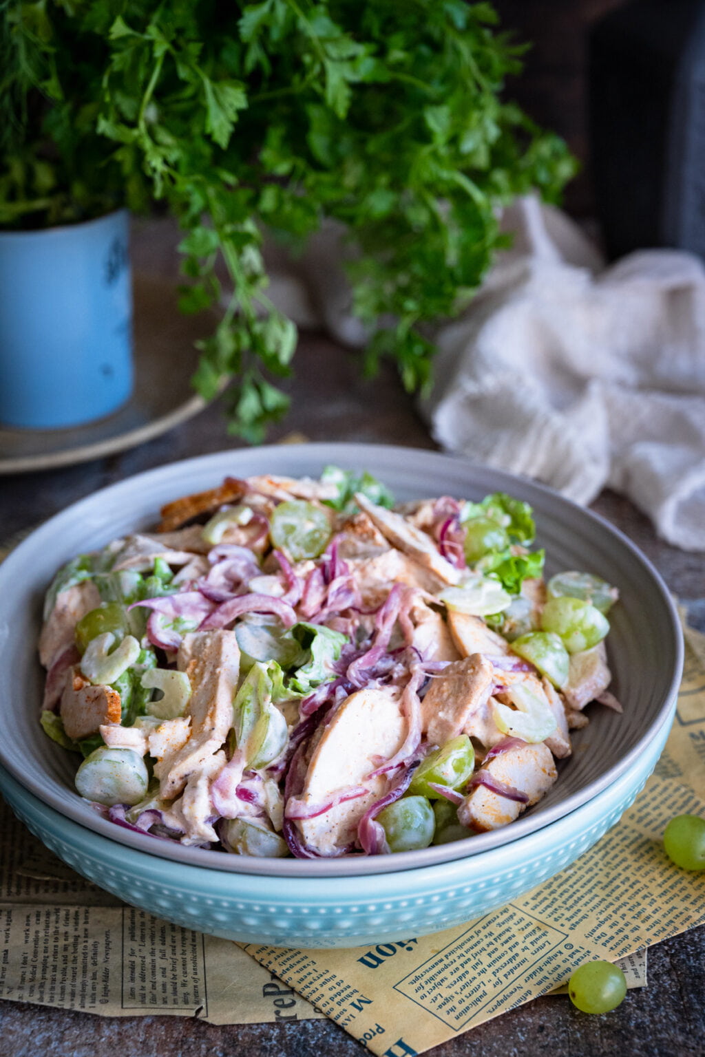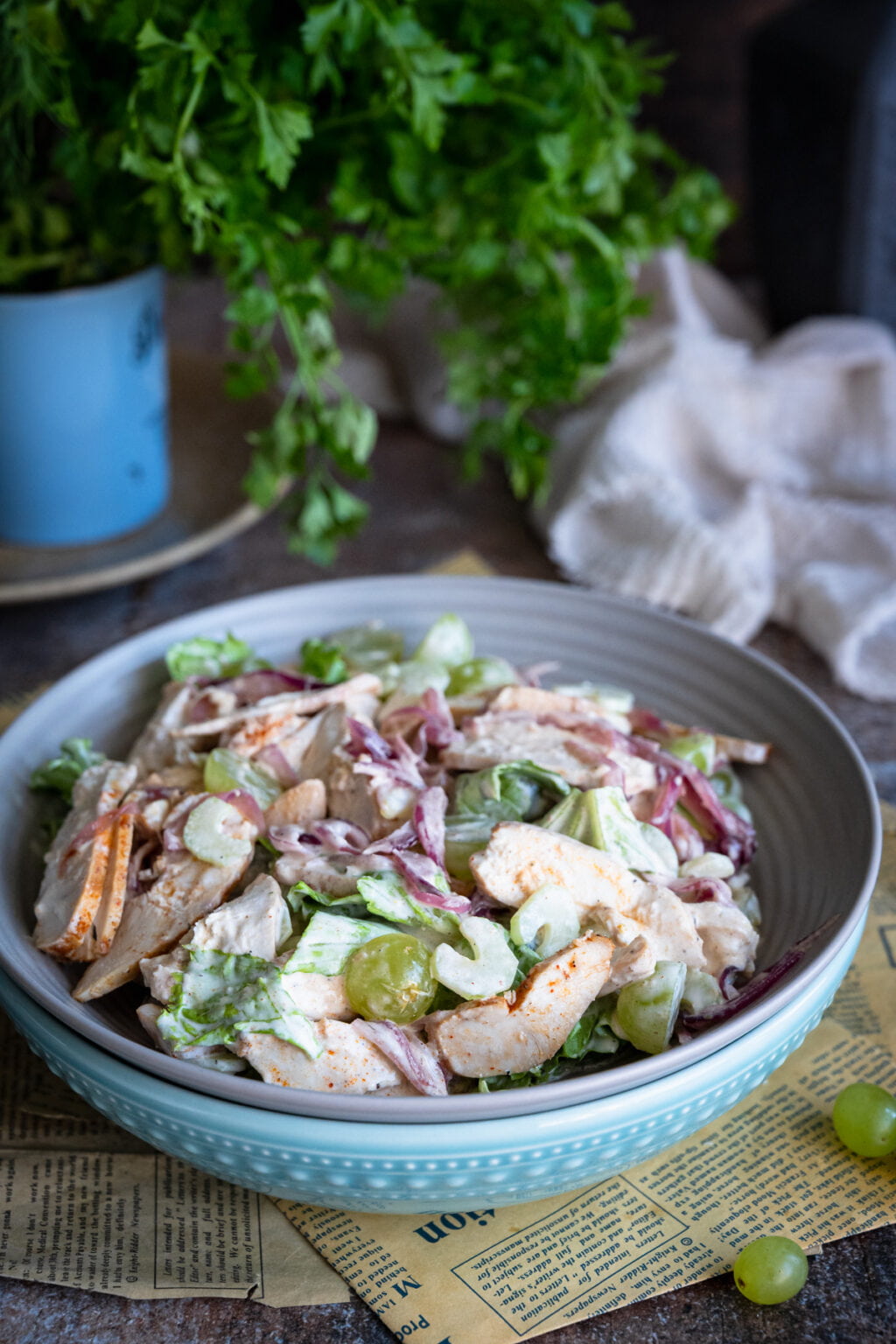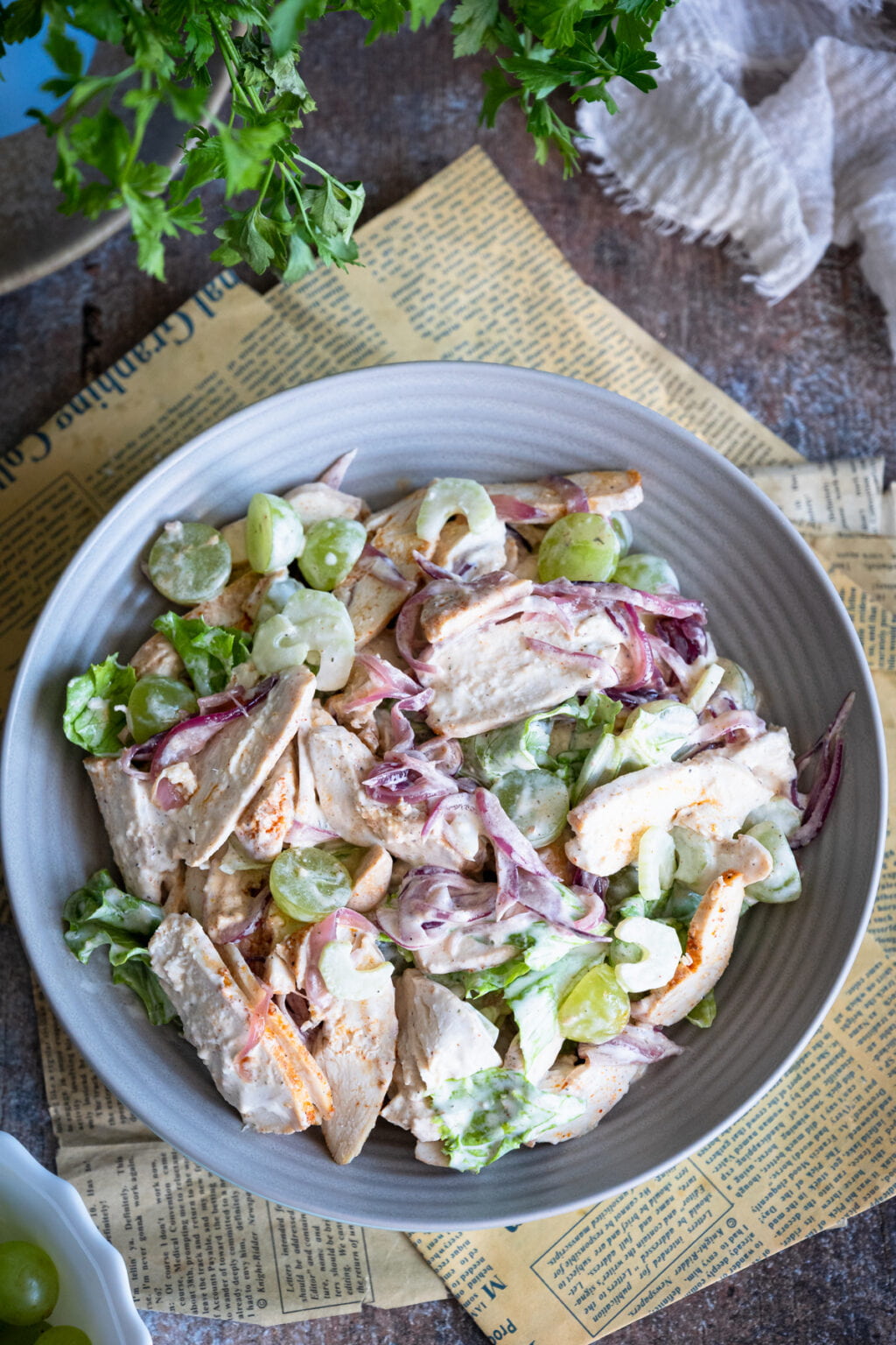 Sałatka z pieczonym kurczakiem, selerem naciowym i winogronami