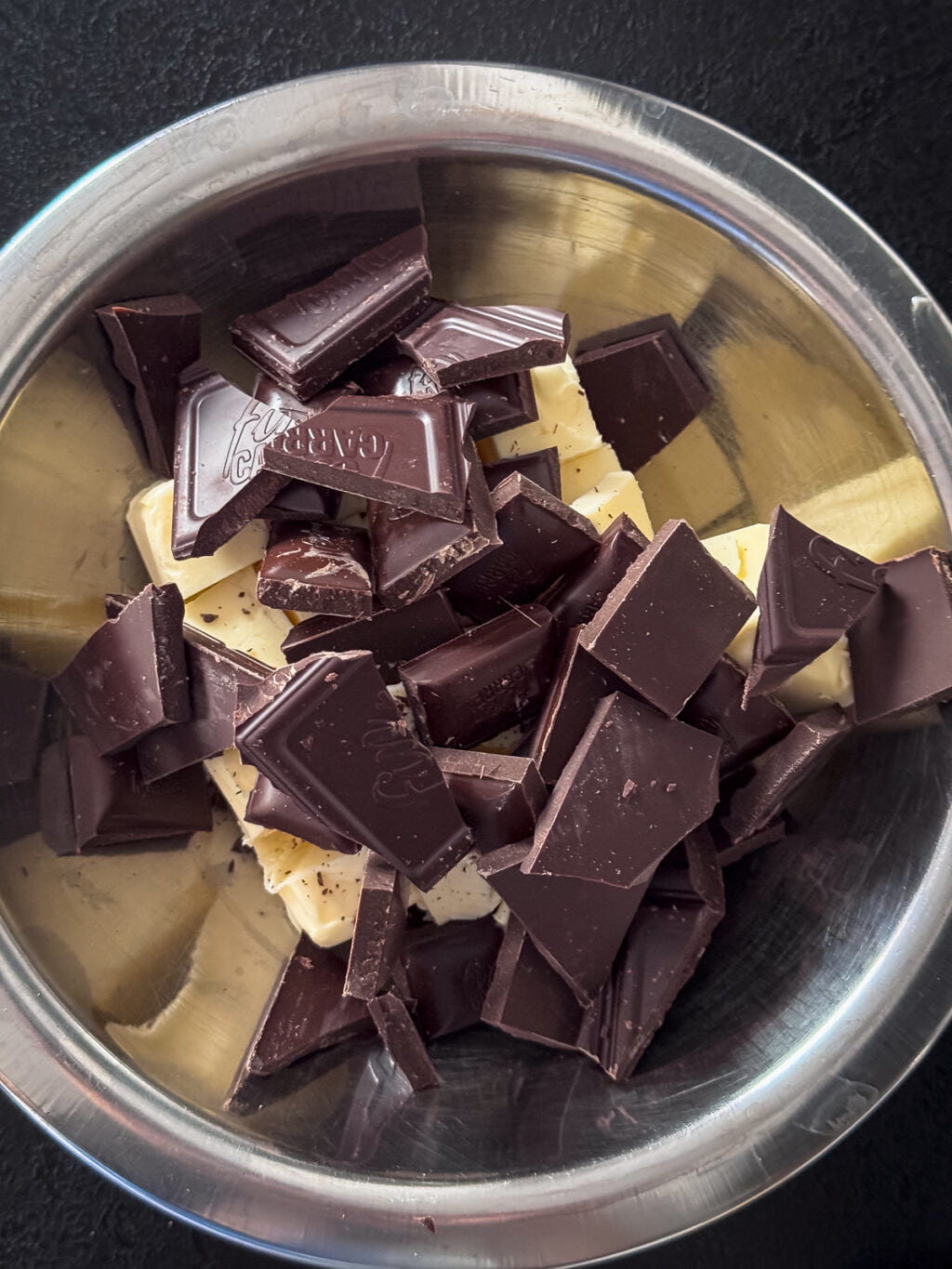 • 150 g czekolady (100 g czekolady deserowej i 50 g czekolady gorzkiej)