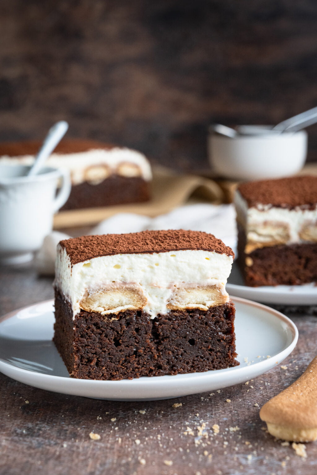 To połączenie klasycznego, wilgotnego brownie z delikatnym kremem śmietankowym i kawowymi biszkoptami to prawdziwa deserowa przyjemność. Brownie a’la tiramisu zachwyca intensywnym smakiem czekolady, aromatem biszkoptów nasączonych w kawie oraz lekkością kremu ze śmietanki i mascarpone. Bez wątpienia to coś więcej niż zwykłe ciasto, to wyjątkowy deser, który sprawdzi się zarówno na co dzień, jak i od święta.