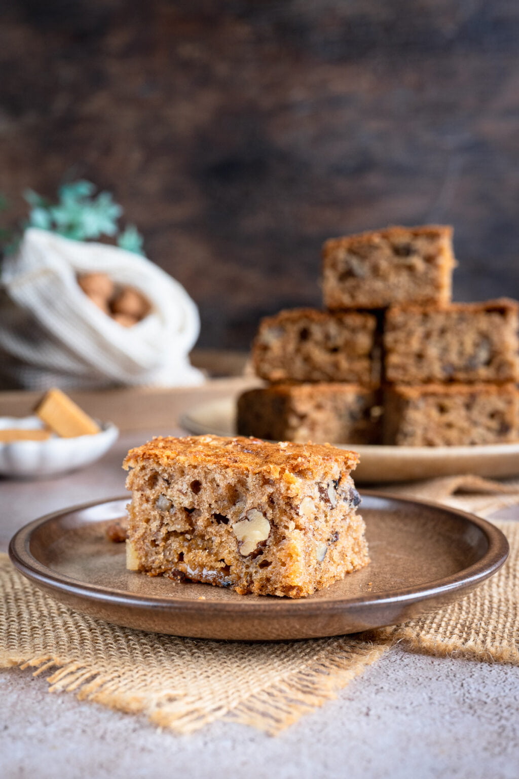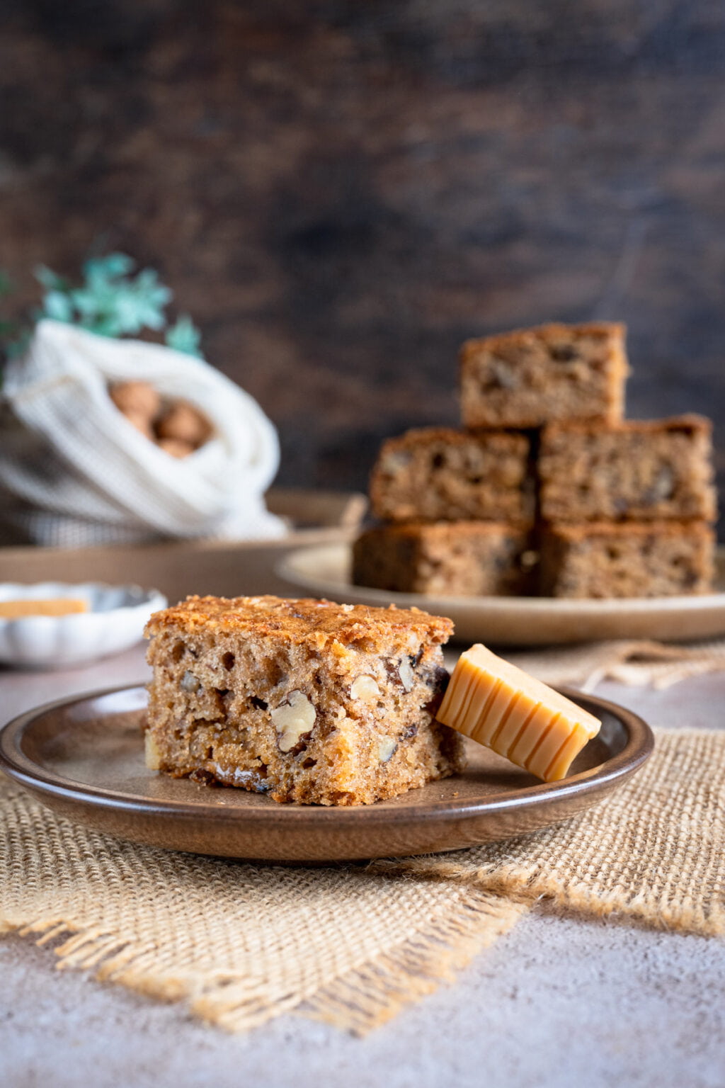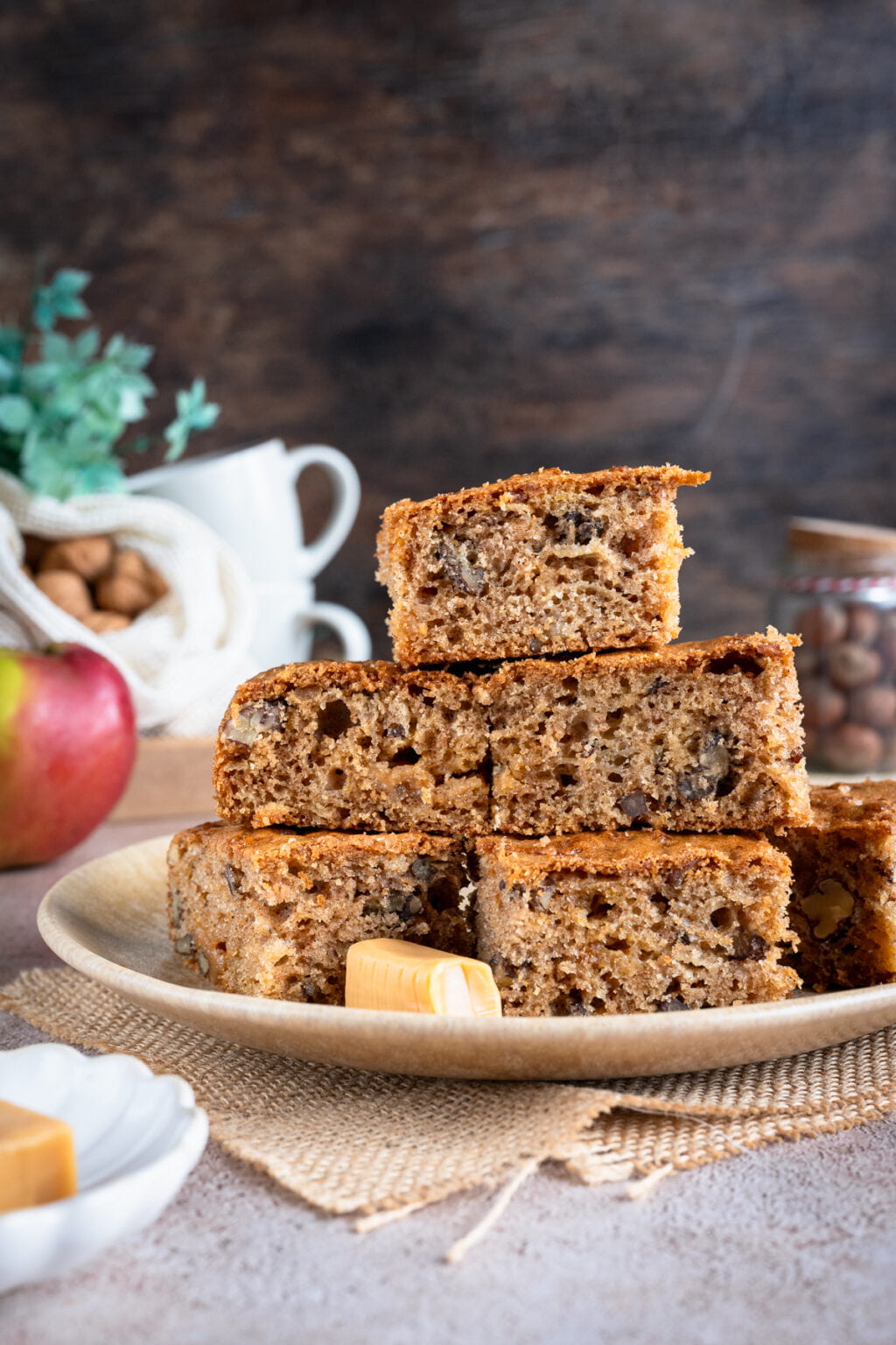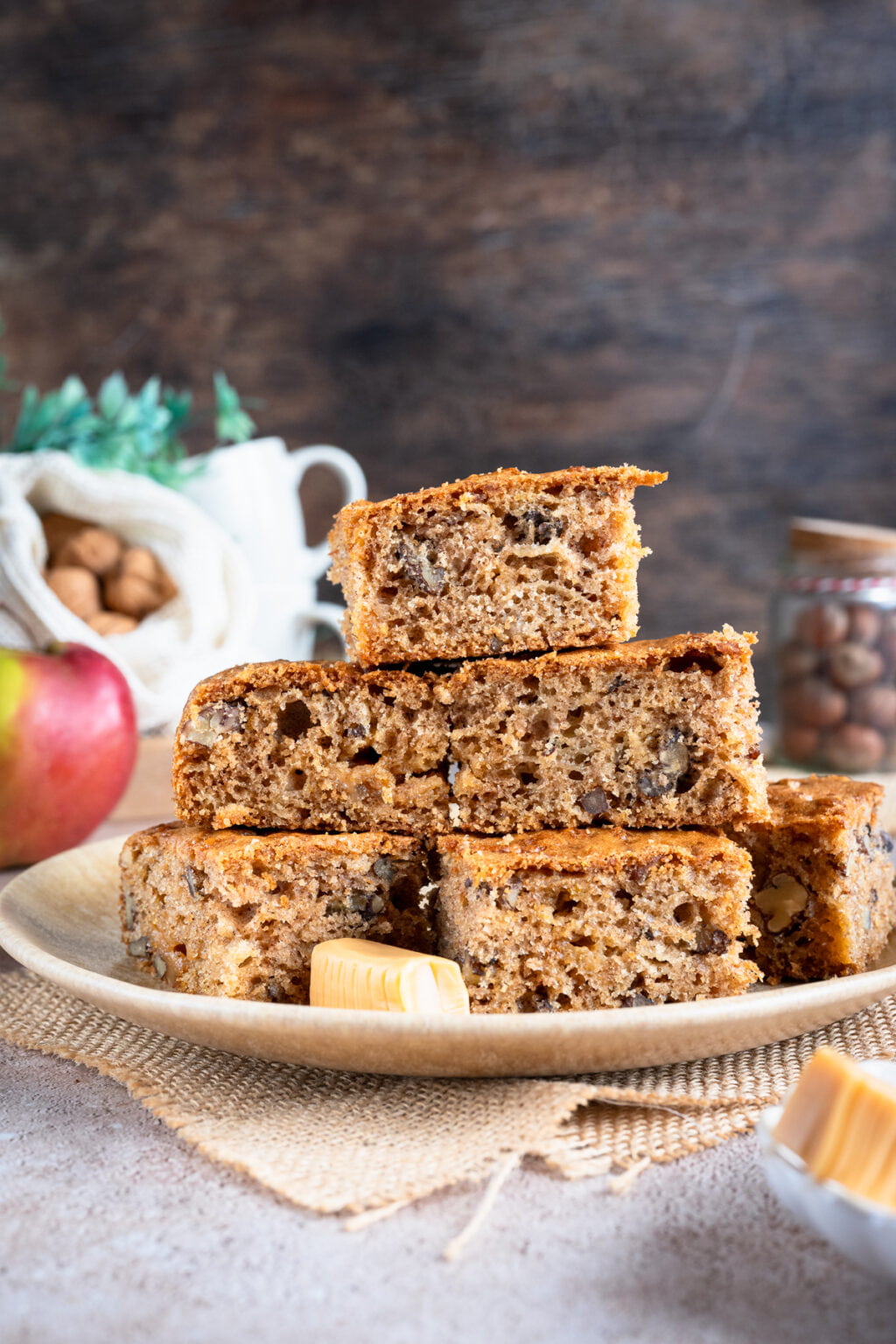 To kolejne ciasto z serii tych, które piekł mój syn, gdy ja nie mogłam działać w kuchni. I powiem szczerze, wyszło na maxa w naszym stylu. Cynamon, lekko karmelowa nuta cukru trzcinowego, jabłka, orzechy i rozpuszczające się krówki… od smaku tego ciasta, wprost nie można się było oderwać. Zniknęło w tempie błyskawicznym i wszyscy stwierdziliśmy, że było najlepszym wypiekiem ostatnich tygodni! Totalnie NASZE smaki.