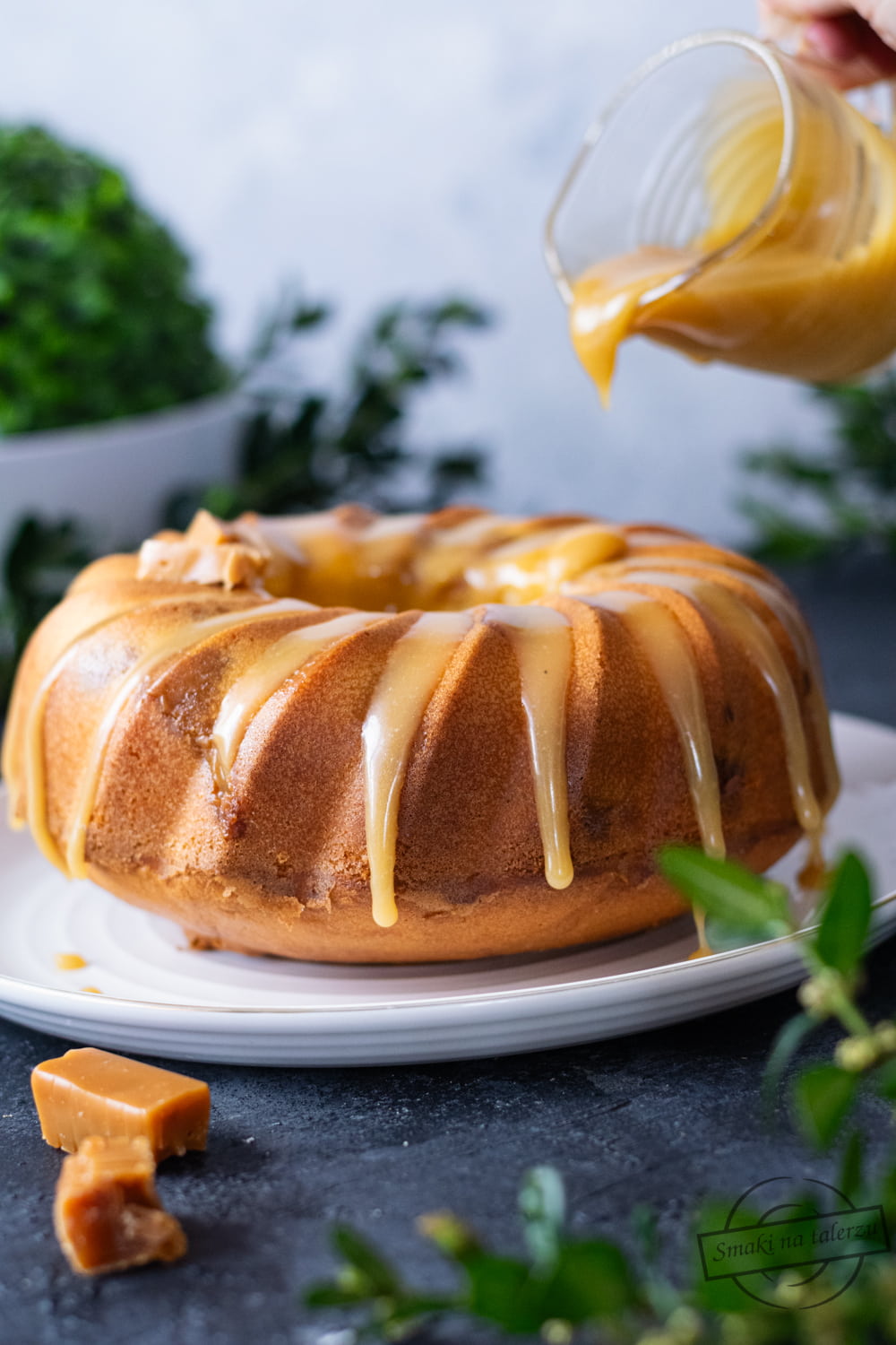 Sama polewa karmelowa jest baaardzo słodka, dlatego nigdy nie daję jej w całości. Zazwyczaj delikatnie polewam tylko wierzch ciasta, a resztę wykorzystuję do innych deserów. Dzięki temu babka zachowuje idealny balans. Pozostaje wilgotna i aromatyczna, ale nie przytłacza słodyczą.