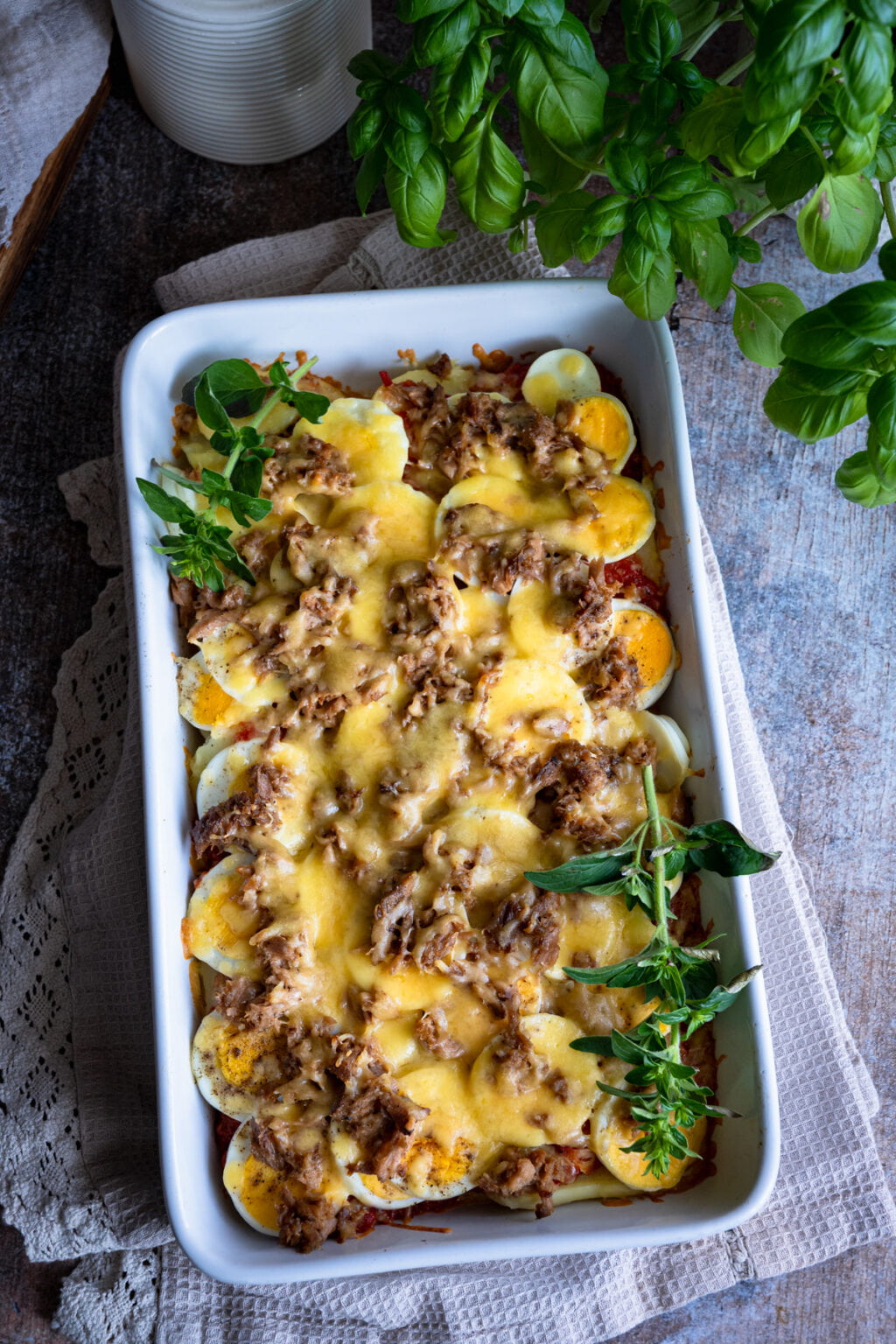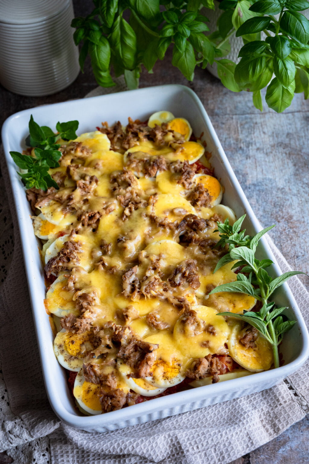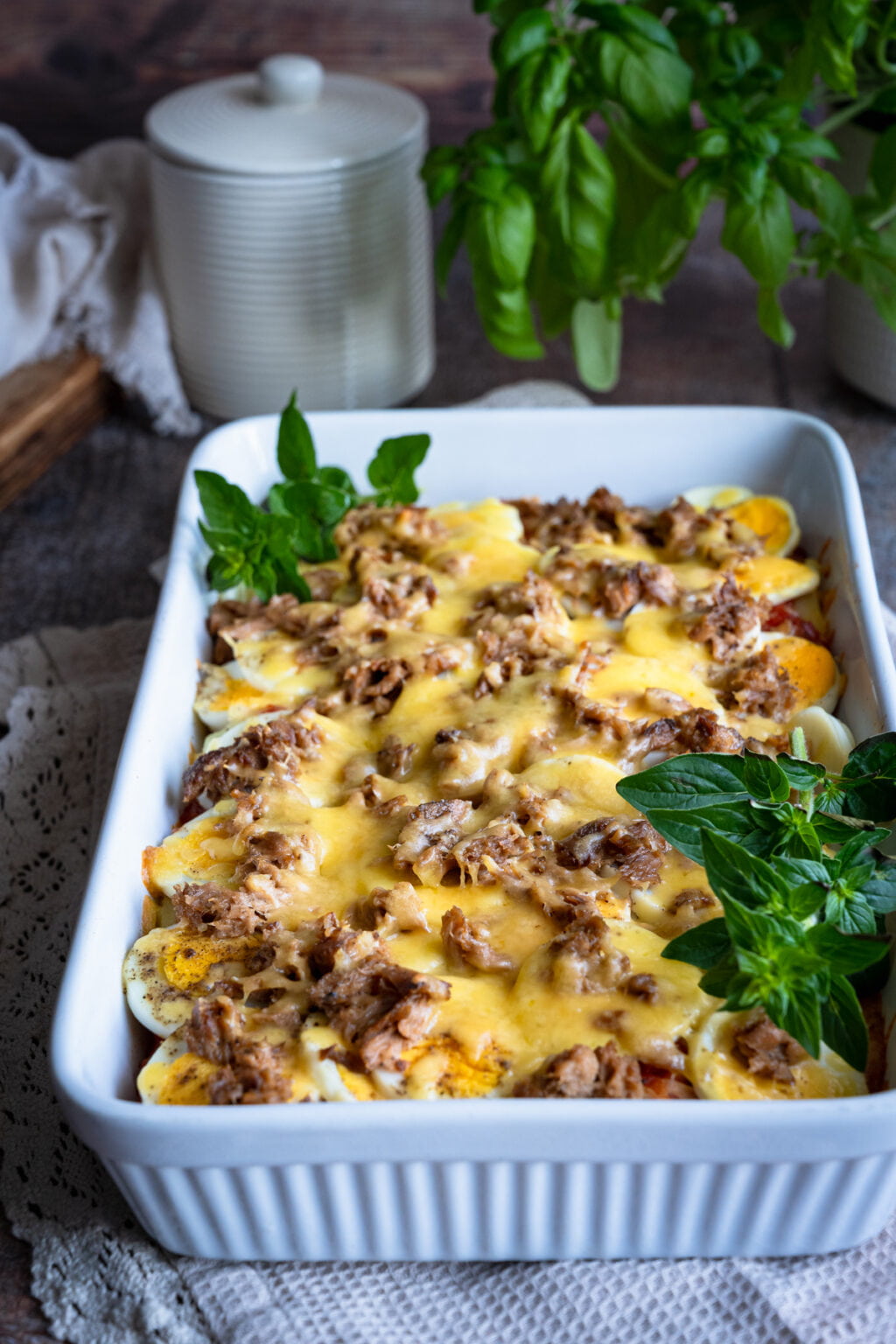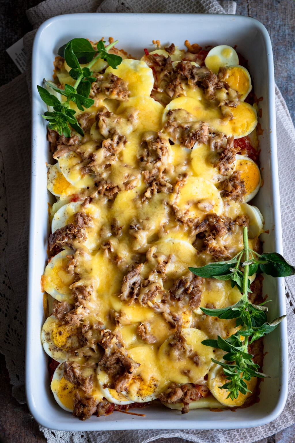 Zapiekanka ziemniaczana z jajkami i tuńczykiem