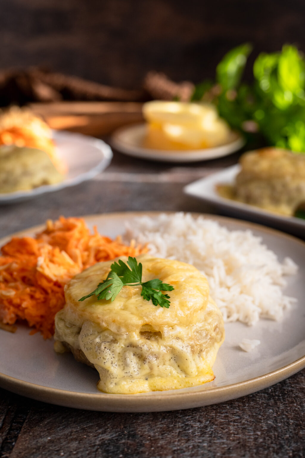 Po tym czasie na wierzch każdego kotleta dajemy plaster sera i zapiekamy jeszcze 5-10 minut, aż ser się rozpuści i lekko zarumieni.