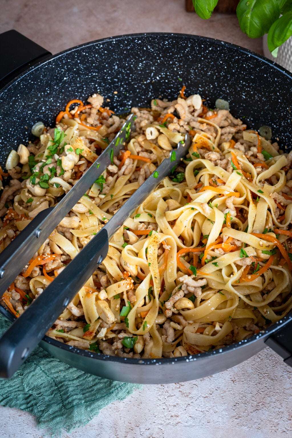 Potrzebujesz czegoś konkretnego, rozgrzewającego i naprawdę sycącego, najlepiej do zrobienia w mniej niż 30 minut? Ten makaron z mięsem mielonym w lekko azjatyckim stylu to właśnie takie danie. Proste składniki, jedna patelnia i kilkanaście minut pracy, a efekt jest naprawdę pełen smaku. Serio! Jest pysznie.