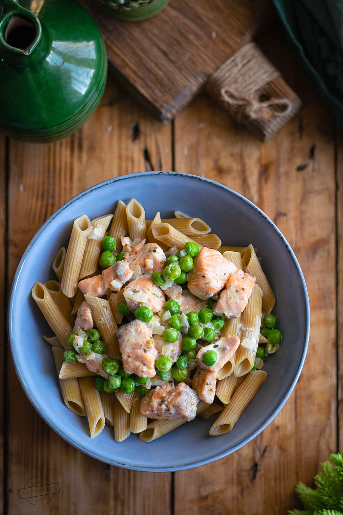 Makaron z łososiem i zielonym groszkiem