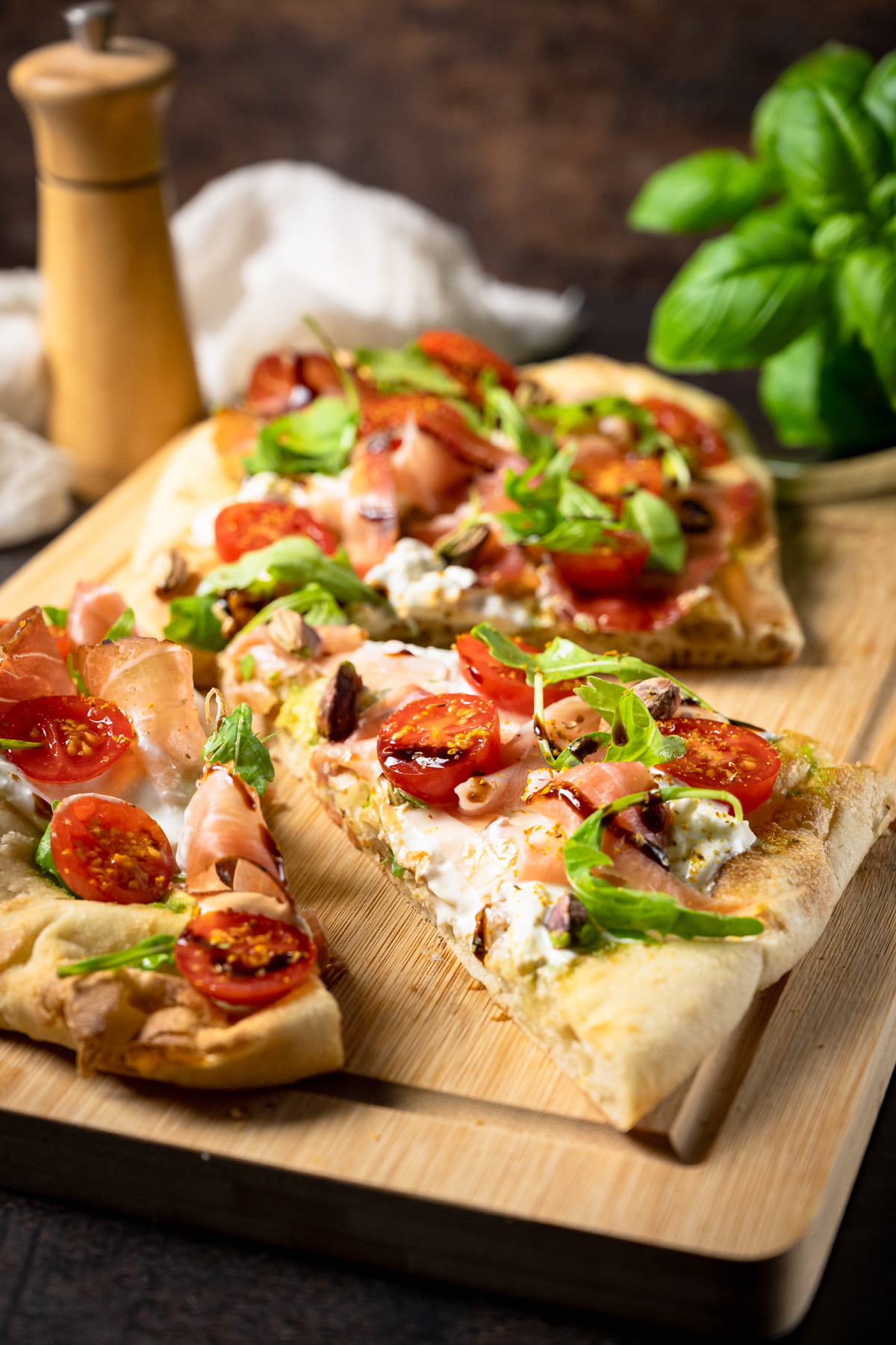 Pinsa z burratą i szynką parmeńską