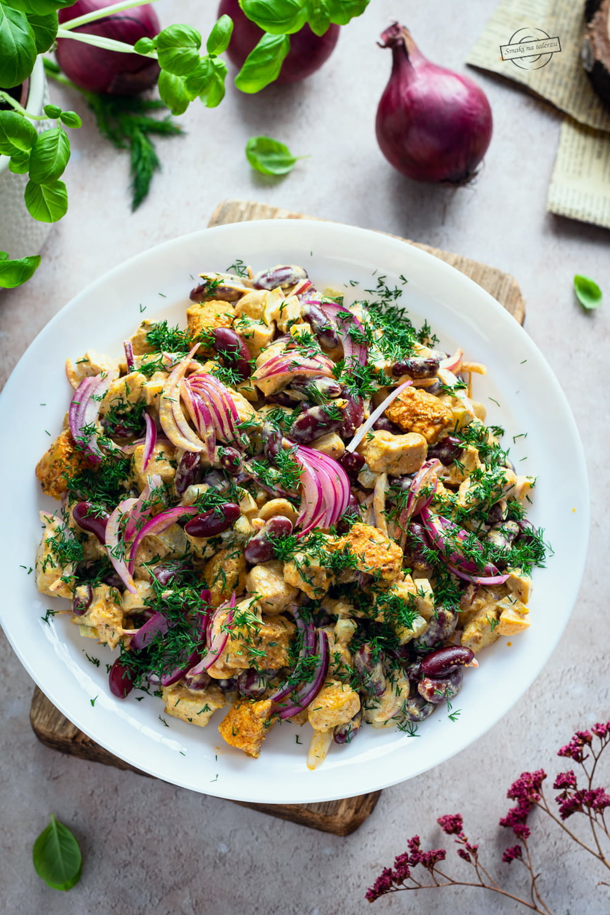 Lubisz sałatki z kurczakiem? W takim razie istnieje duża szansa, że spodoba Ci się sałatka z kurczakiem curry, czerwoną fasolką,